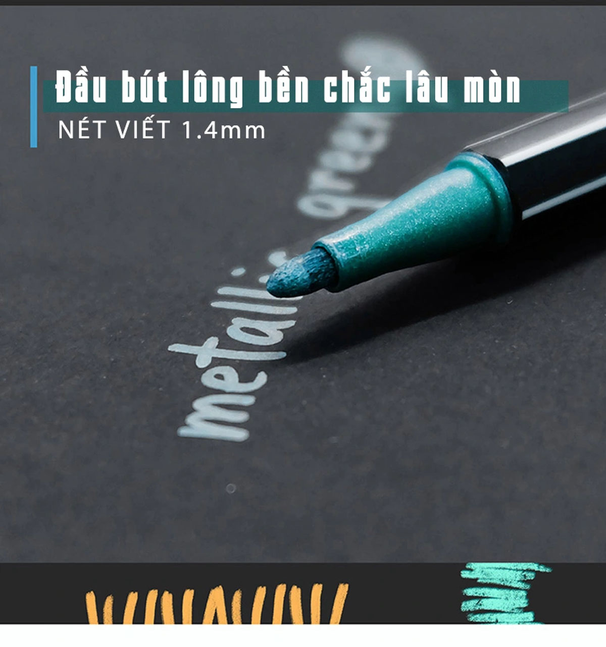 Màu sắc bền với hiệu ứng ánh kim lấp lánh ấn tượng, làm chữ viết mềm mại, sang trọng.