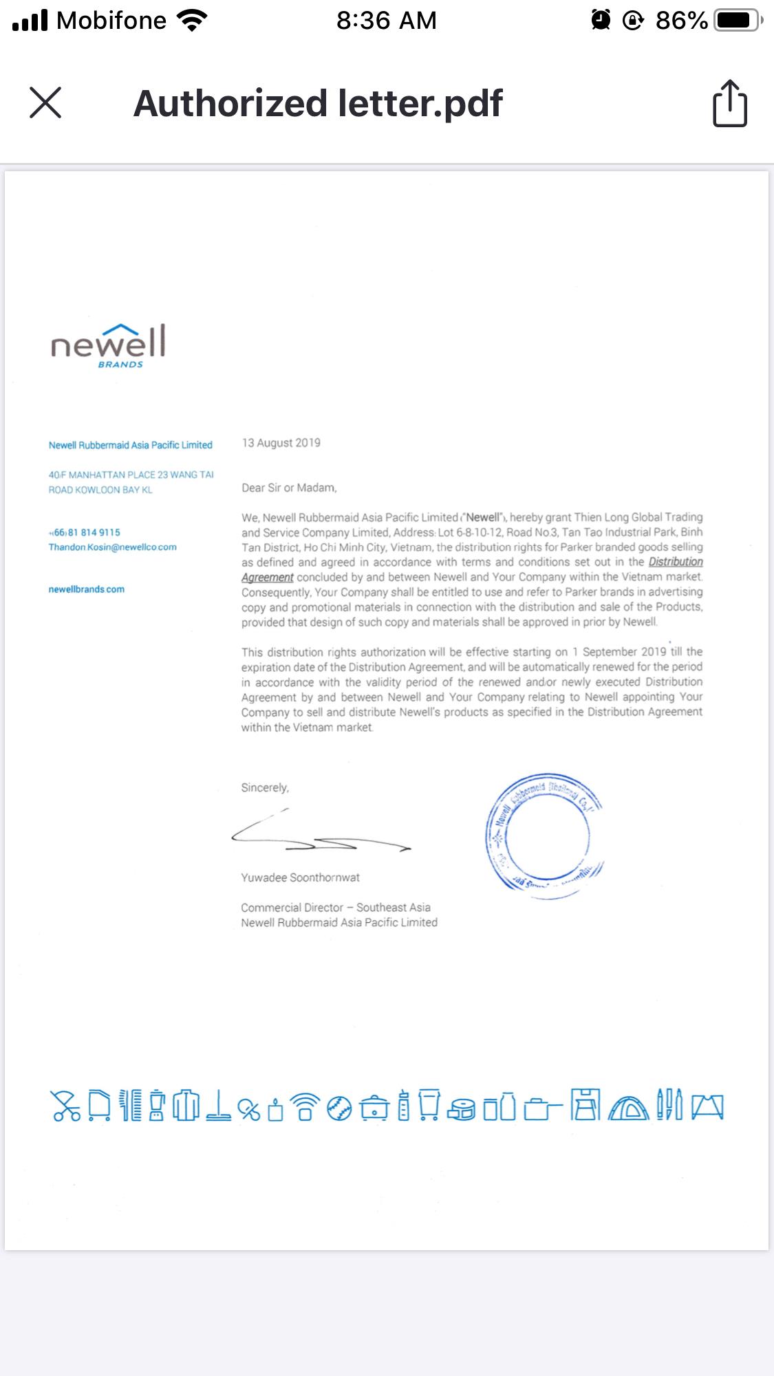 Công ty cổ phần tập đoàn Thiên Long là nhà phân phối chính thức thương hiệu Parker tại Việt Nam .