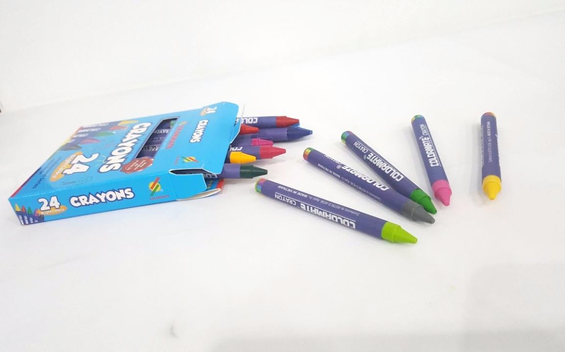 Bút Sáp Màu 24 Cây Hộp Giấy Colormate - CRAYONS-24P được làm từ nguyên liệu cao cấp cho màu sắc tươi sáng như thật. Đặc biệt, bộ sản phẩm đạt tiêu chuẩn chất lượng về