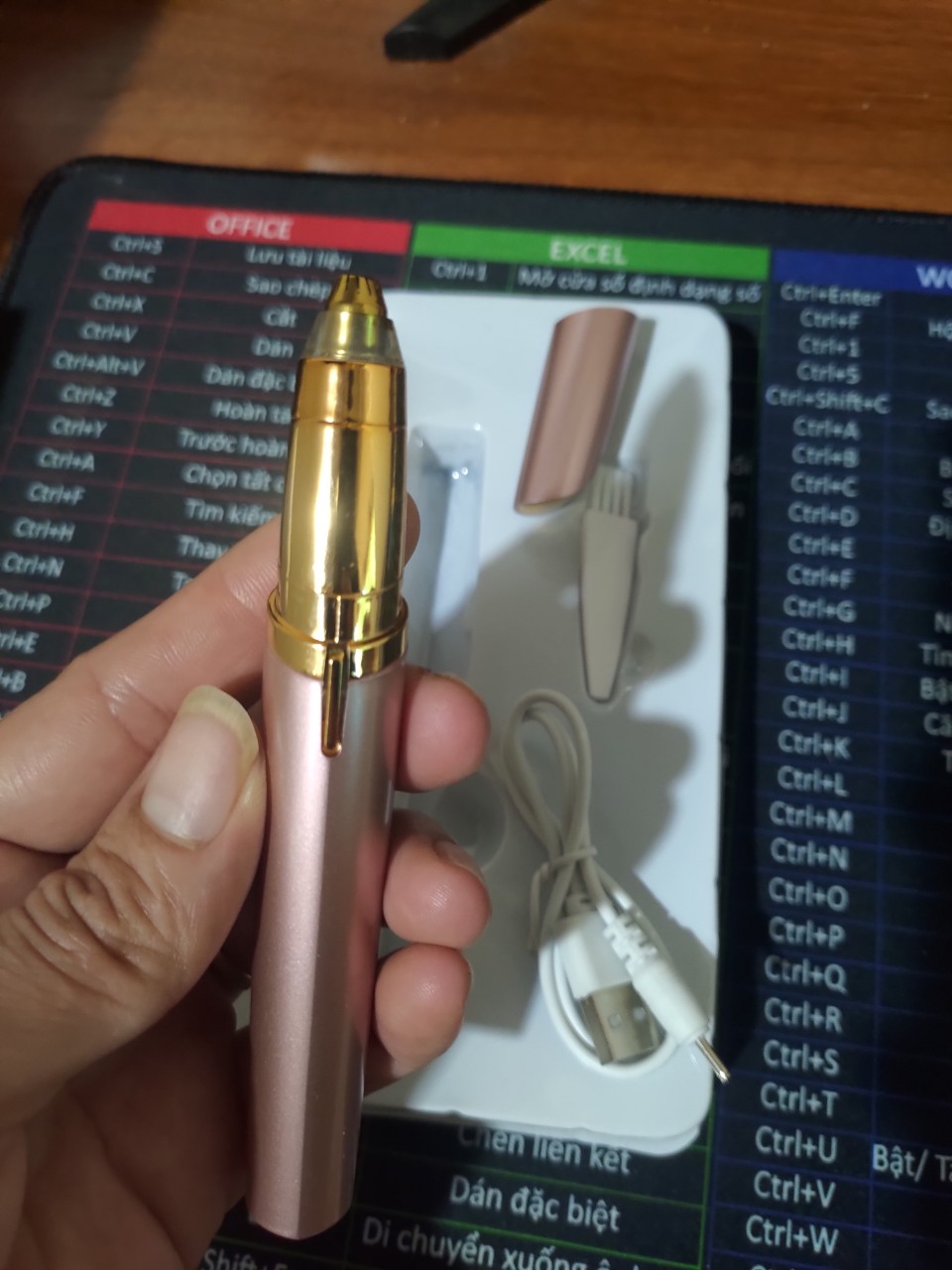 Bút Tỉa Lông Mày, Máy Tỉa Lông Mày Cao cấp ,Thiết kế Nhỏ gọn, đẹp, rẻ Đặc trưng: 1. Thiết kế dạng thỏi son, kích thước cầm tay. 2. An toàn, thiết thực, tinh tế và dễ mang theo. 3. Kích thước nhỏ gọn, dễ mang theo và sử dụng. 4. Thiết kế nhỏ gọn và nhẹ cho phép dễ mang theo. Chi tiết sản phẩm: Chất liệu: ABS Màu sắc: Vàng, hồng Kích thước: 13.1 * 1.6cm Cách sử dụng: 1. khi hết pin dùng dây sạc lại và dùng 2. Mở nắp ra, nhấn nút nguồn. 3. Di chuyển máy tỉa theo kiểu lông mày bạn muốn. Bộ sản phẩm gồm; 1 bút tỉa lông mày, 1 cáp sạc 1 chổi v, với những tính năng ưu việt thì sản phẩm đang được các chị em lựa trọn hàng đầu trên thị trường. với thiết kết lưỡi dao cực kỳ sắc bén vòng quay tốc độ cao khi sử dụng không gây tổn thương cho da, mà vẫn làm sạch lông tuyệt đối an toàn. Sản phẩm bên shop còn được bảo hàng 6 tháng nên các bạn hoàn toàn yên tâm mua sắm. cần biết thêm thông tin về sản phẩm xin hãy liên hệ cho shop để được hỗ trọ ạ.