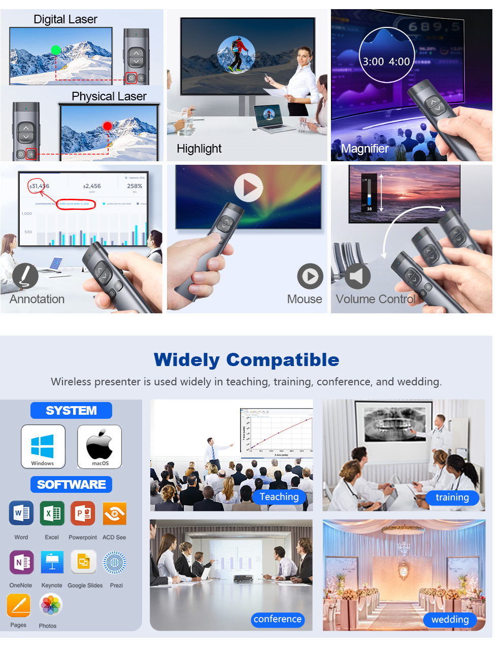 Sản phẩm phù hợp với mọi nhu cầu thuyết trình từ cơ bản đến nâng cao. Đồng thời, rất thích hợp với nhu cầu trình chiếu trên màn hình tivi, màn LED đang phổ biến hiện nay.
