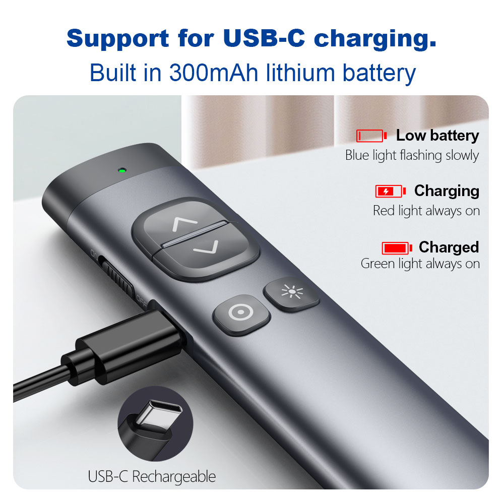 Sản phẩm cắm usb kết nối và dùng trực tiếp các tính năng cơ bản của bút trình chiếu.