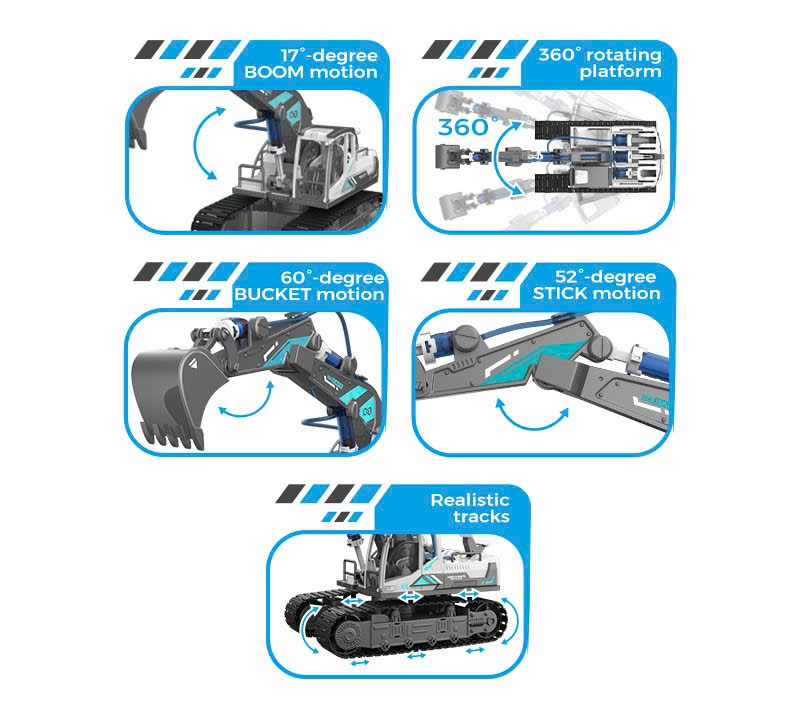 Mô hình máy xúc kim loại điều khiển từ xa 678-8080E – 15 kênh, sóng 2.4G, kích thước lớn Trải nghiệm điều khiển máy móc công trình như thật với máy xúc điều khiển từ
