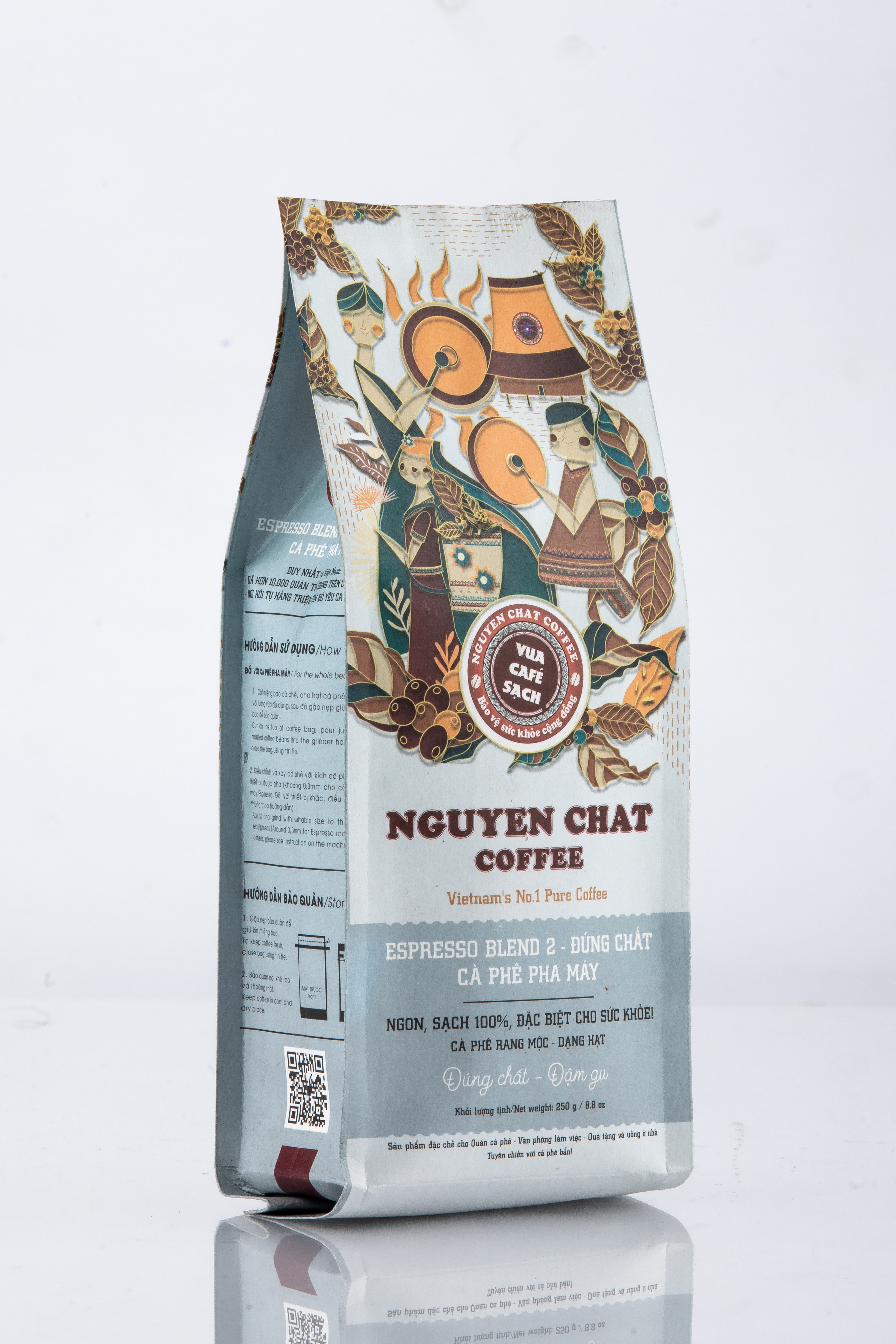 Cà Phê Nguyên Chất Hạt ESPRESSO BLEND 2 dạng HẠT vị đắng vừa, chua thanh, và thơm quyến rũ đặc trưng từ hạt Arabica Cầu Đất – Lâm Đồng (dành riêng cho pha máy Espresso)