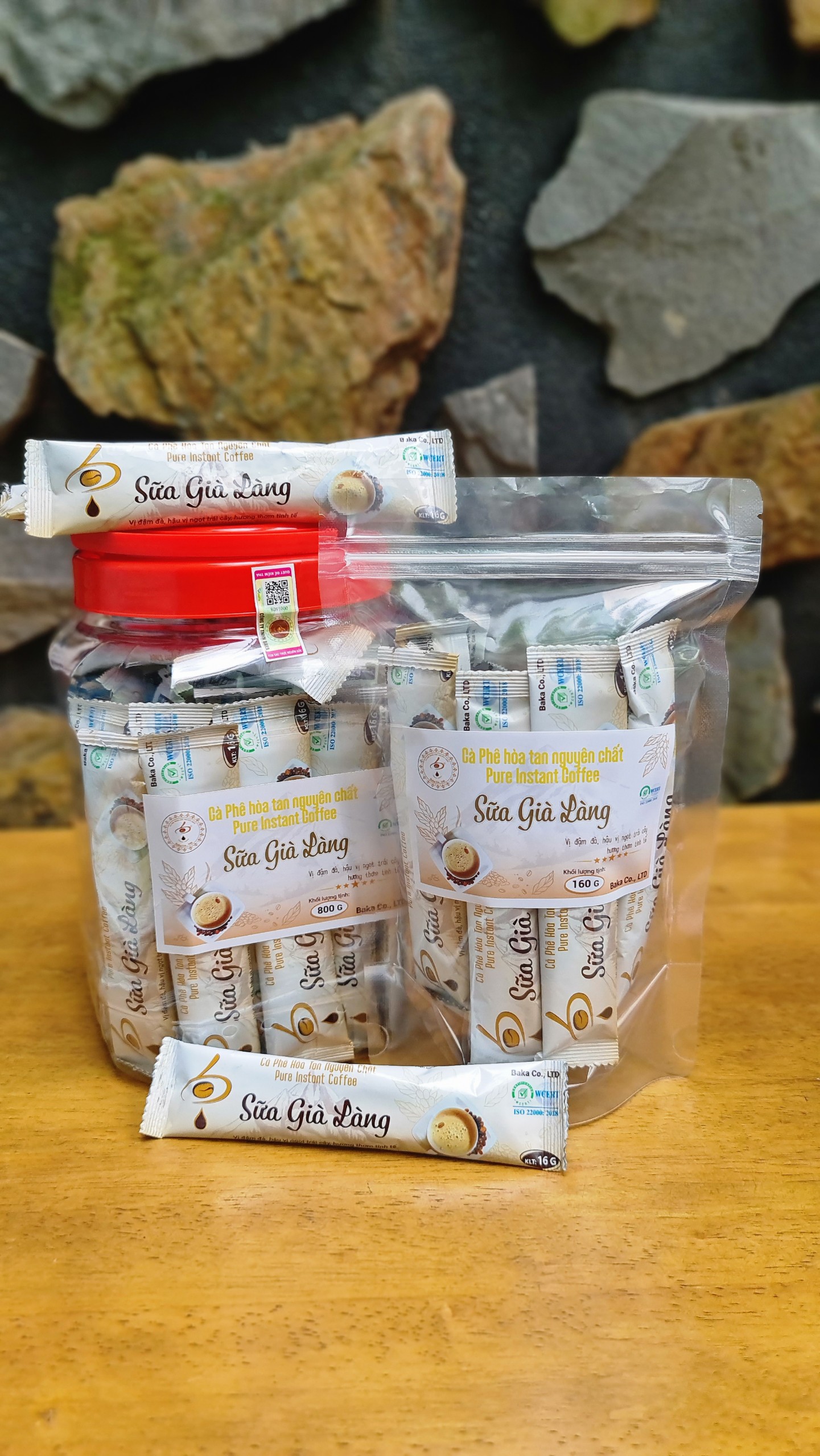 Cà Phê Hòa Tan Nguyên Chất SỮA GIÀ LÀNG - Bì Zip - Sản phẩm làm từ cà phê nguyên chất, không sử dụng chất độn, không sử dụng đường Maltodextrin. - Nguyên liệu được