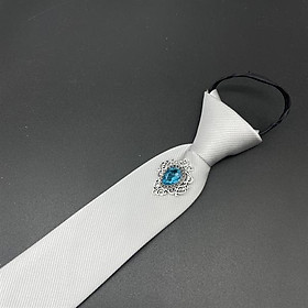 ✨Cà vạt 6cm màu xám trắng thắt sẵn đính đá xanh sang trọng