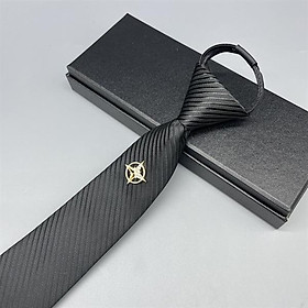 Cà vạt nam thắt sẵn 6cm màu đen hoạ tiết gắn tag cài thời trang 2024