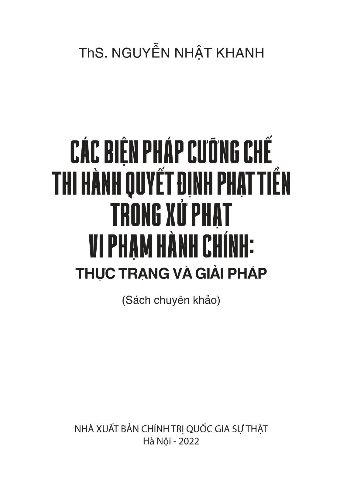 Các Biện Pháp Cưỡng Chế Thi Hành Quyết Định Phạt Tiền Trong Xử Phạt Vi Phạm Hành Chính: Thực Trạng Và Giải Pháp Cuốn sách tập trung phân tích cơ sở lý luận và pháp lý về các biện pháp cưỡng ...