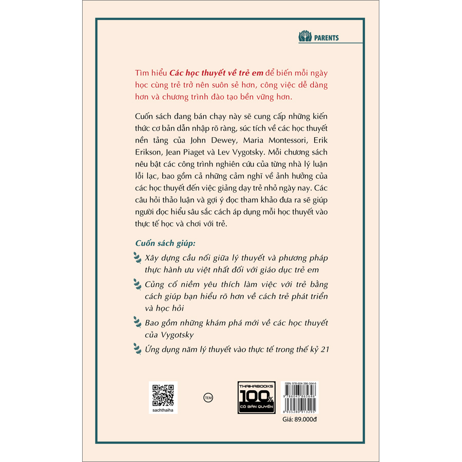 Các lý thuyết về trẻ em của Dewey, Montessori, Erikson, Piaget và Vygotsky Công ty phát hành: Thái Hà Tên tác giả: Carol Garhart Mooney Số trang: 208 trang Khổ: 15.5 x 24cm Nhà xuất