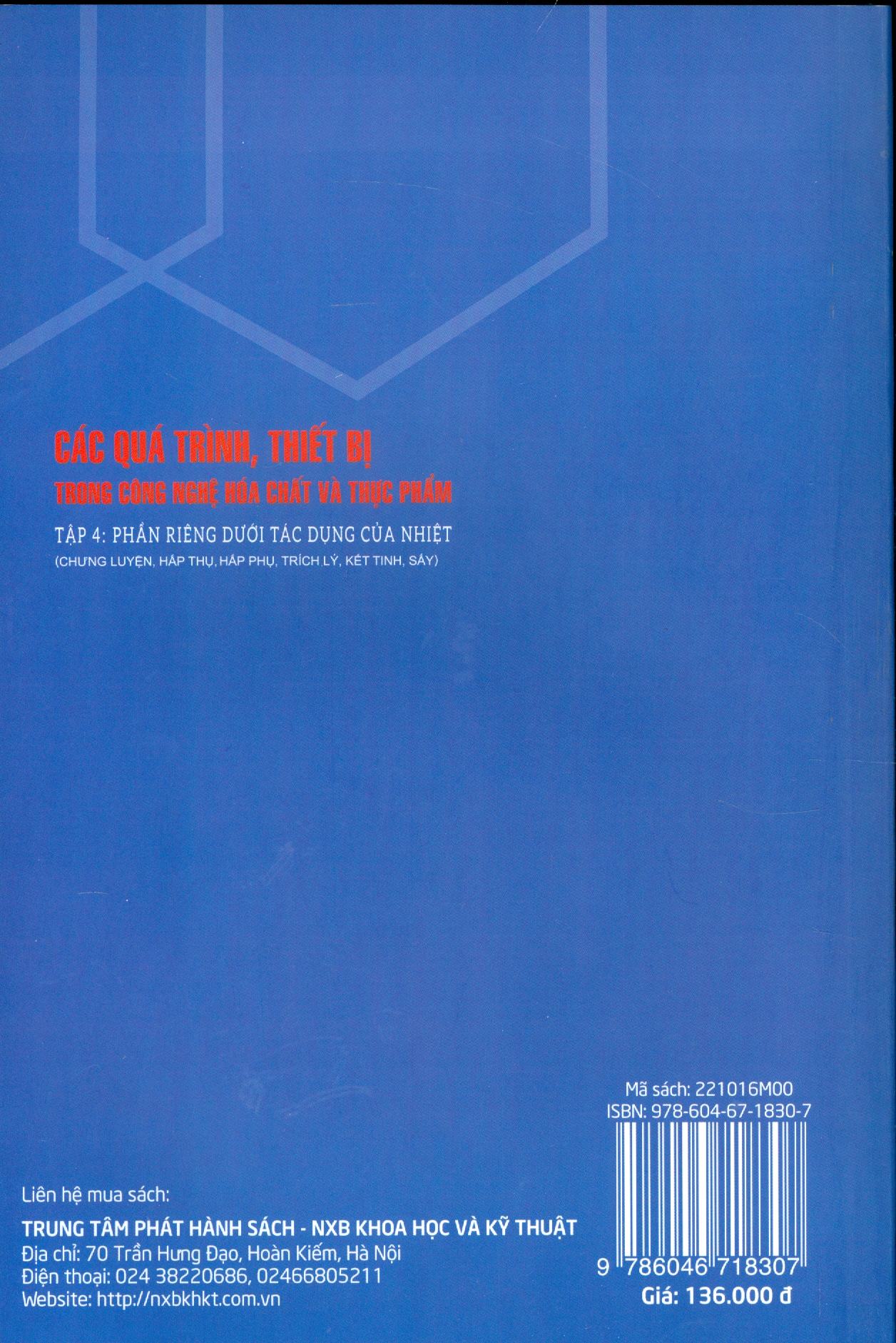 Các Quá Trình, Thiết Bị Trong Công Nghệ Hóa Chất Và Thực Phẩm, Tập 4: Phần Riêng Dưới Tác Động Của Nhiệt (Chưng Luyện, Hấp Thụ, Hấp Phụ, Trích Lý, Kết Tinh, Sấy) là tập tiếp theo trong bộ sách gồm 5 tập dùng cho sinh viên ngành Hóa kỹ thuật và Thực phẩm, đồng thời cũng là tài liệu tham khảo tốt cho các nhà khoa học, cán bộ kỹ thuật trong lĩnh vực chuyên môn Kỹ thuật hóa học, thực phẩm và Kỹ thuật môi trường. Nội dung sách trình bày các quá trình phân riêng dưới tác dụng của nhiệt, như quá trình chưng luyện, hấp thụ, trích lý, hấp phụ, kết tinh và sấy; đồng thời cũng mô tả cấu tạo, nguyên tắc làm việc của một số thiết bị đặc trưng cho các quá trình. Quyển sách được biên soạn dựa trên cơ sở những giáo trình và bài giảng đã được xuất bản từ trước đây, nội dung sát với thực tiễn sản xuất. Do đó, có thể giúp cho độc giả tự giải quyết những vấn đề có liên quan trong nghiên cứu và sản xuất.