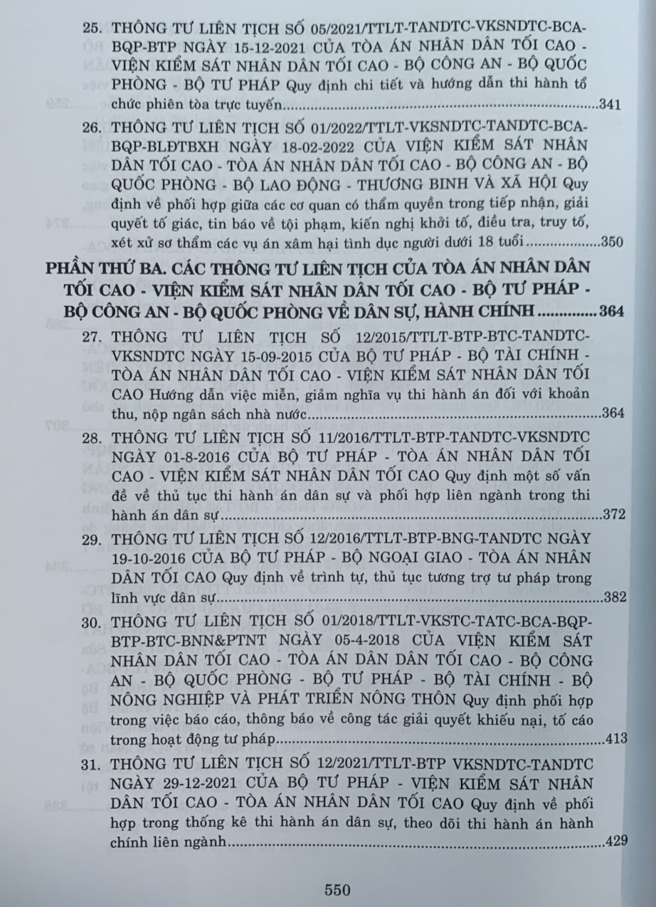 Các thông tư liên tịch của Tòa án nhân dân tối cao - Viện kiểm sát nhân dân tối cao - Bộ tư pháp - Bộ công an - Bộ quốc phòng về hình sự, tố tụng hình sự, dân sự, tố tụng dân sự, hành chính, kinh tế, thương mại, lao động, hôn nhân gia đình mới nhấtCác thông tư liên tịch của Tòa án nhân dân tối cao - Viện kiểm sát nhân dân tối cao - Bộ tư pháp - Bộ công an - Bộ quốc phòng về hình sự, tố tụng hình sự, dân sự, tố tụng dân sự, hành chính, kinh tế, thương mại, lao động, hôn nhân gia đình mới nhấtCác thông tư liên tịch của Tòa án nhân dân tối cao - Viện kiểm sát nhân dân tối cao - Bộ tư pháp - Bộ công an - Bộ quốc phòng về hình sự, tố tụng hình sự, dân sự, tố tụng dân sự, hành chính, kinh tế, thương mại, lao động, hôn nhân gia đình mới nhấtCác thông tư liên tịch của Tòa án nhân dân tối cao - Viện kiểm sát nhân dân tối cao - Bộ tư pháp - Bộ công an - Bộ quốc phòng về hình sự, tố tụng hình sự, dân sự, tố tụng dân sự, hành chính, kinh tế, thương mại, lao động, hôn nhân gia đình mới nhấtCác thông tư liên tịch của Tòa án nhân dân tối cao - Viện kiểm sát nhân dân tối cao - Bộ tư pháp - Bộ công an - Bộ quốc phòng về hình sự, tố tụng hình sự, dân sự, tố tụng dân sự, hành chính, kinh tế, thương mại, lao động, hôn nhân gia đình mới nhấtCác thông tư liên tịch của Tòa án nhân dân tối cao - Viện kiểm sát nhân dân tối cao - Bộ tư pháp - Bộ công an - Bộ quốc phòng về hình sự, tố tụng hình sự, dân sự, tố tụng dân sự, hành chính, kinh tế, thương mại, lao động, hôn nhân gia đình mới nhấtCác thông tư liên tịch của Tòa án nhân dân tối cao - Viện kiểm sát nhân dân tối cao - Bộ tư pháp - Bộ công an - Bộ quốc phòng về hình sự, tố tụng hình sự, dân sự, tố tụng dân sự, hành chính, kinh tế, thương mại, lao động, hôn nhân gia đình mới nhấtCác thông tư liên tịch của Tòa án nhân dân tối cao - Viện kiểm sát nhân dân tối cao - Bộ tư pháp - Bộ công an - Bộ quốc phòng về hình sự, tố tụng hình sự, dân sự, tố tụng dân sự, hành chính, kinh tế, thương mại, lao động, hôn nhân gia đình mới nhất