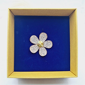 Cài áo bông hoa vàng có kiểu dáng và kích cỡ đa dạng, là điểm nhấn đầy thú vị cho trang phục. Được sử dụng phổ biến trên áo vest, váy, đầm như một điểm nhấn trong trang phục của bạn. Chỉ là chiếc cài áo nhỏ nhưng cực kỳ hữu hiệu để các nàng chứng tỏ sự thanh lịch, lôi cuốn. Các viên đá trắng lấp lánh kết hợp hài hòa với nhau theo trật tự cố định. Khi tiếp xúc với ánh sáng những viên đá sẽ trở nên đẹp và lung linh hơn.