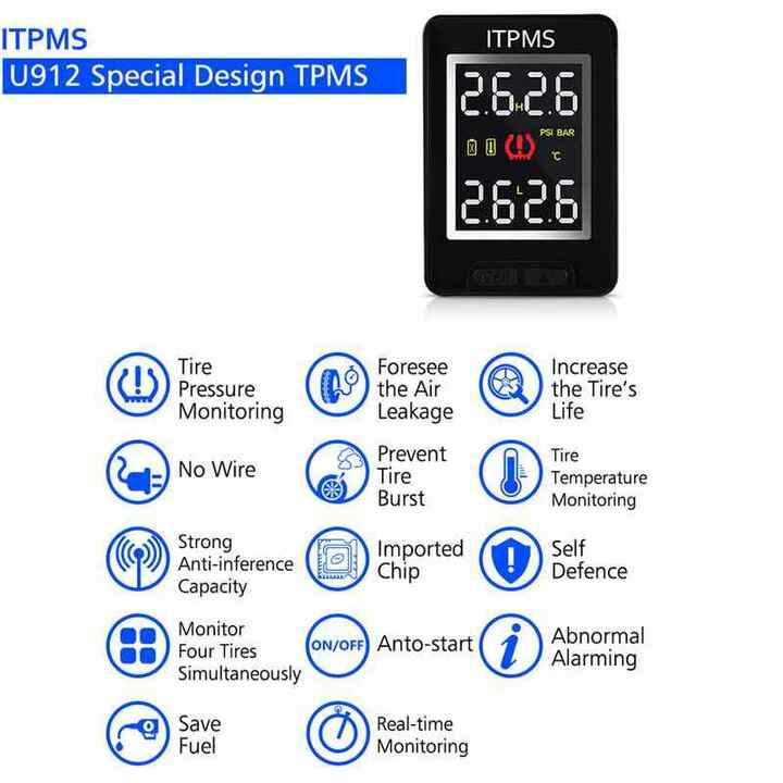 Cảm biến áp suất lốp trong theo các hãng xe Được sản xuất trên công nghệ tiên tiến nhất đến từ nước Mỹ. Toàn bộ thông số liên quan đếp lốp xe của bạn sẽ được hiển thị rõ nét trên màn hình Tính năng: