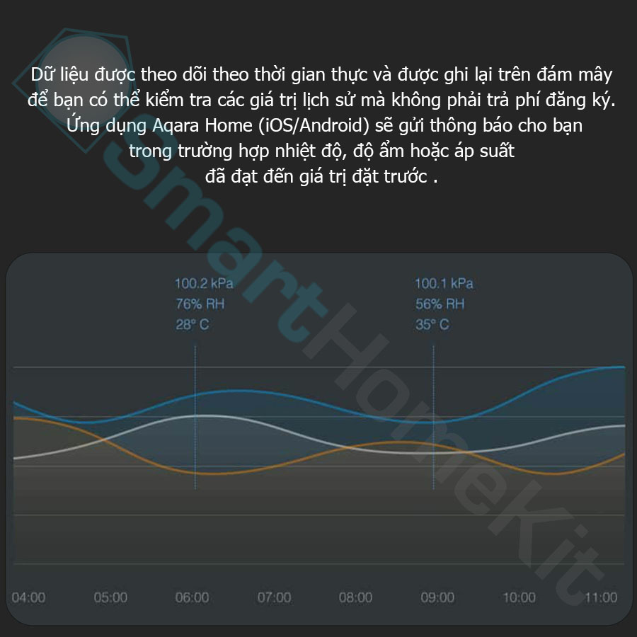 - Thông báo về nhiệt độ và độ ẩm: Ứng dụng Aqara Home (/) có thể thông báo cho bạn trong trường hợp nhiệt độ, độ ẩm hoặc áp suất đã đạt đến giá trị đặt trước .