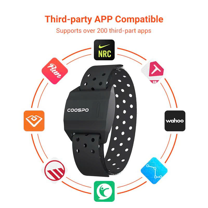 - Tương thích với các ứng dụng thể dục phổ biến, ví dụ: Coosporide, Endomondo, Wahoo, Runtastic, UA Run, Zwift, Opendrider hoặc các Ứng dụng khác có tính năng hiển thị nhịp tim.