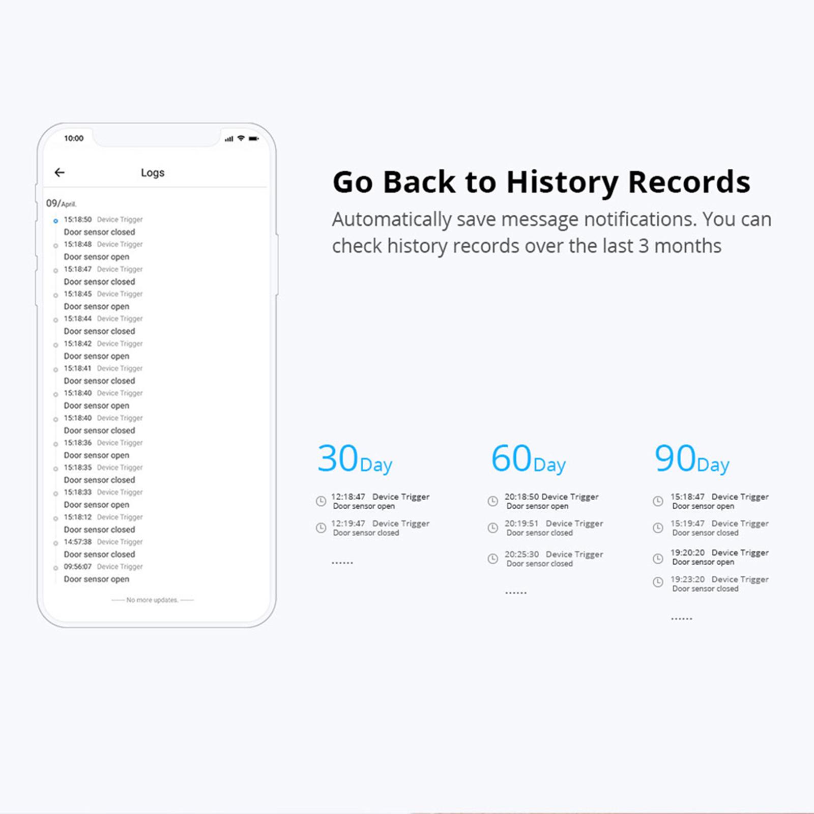 Features: * Work Without Gateway Connection: No gateway required. The sensor is paired with APP eWelink via BT and is controlled on APP eWelink via Wi-Fi. * Status Sync History Records: Worry about leaving your