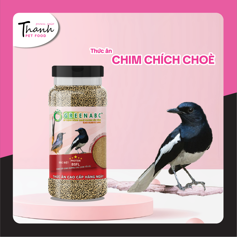 GREENABC - THỨC ĂN CHIM CHÍCH CHÒE HÀNG NGÀY & BỔ SUNG GREENABC là thức ăn cao cấp dành cho CHIM CHÍCH CHÒE. Đặc biệt sản phẩm GREENABC được sản xuất theo phương pháp Áp