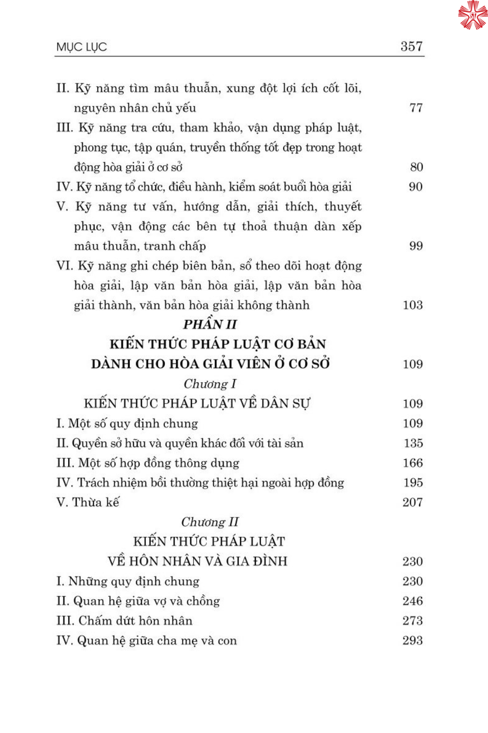 Cuốn sách cung cấp nhiều thông tin về vấn đề hòa giải như: cách hiểu, mục đích, vai trò, ý nghĩa, cơ sở chính trị, pháp lý, phạm vi của công tác hòa giải ở cơ sở; về các vấn đề liên quan đến tổ hòa giải và tổ viên hòa giải; về hoạt động công tác hòa giải: ai được tham gia hòa giải, hòa giải được tiến hành như thế nào, ở đâu, khi nào; về kỹ năng hòa giải ở cơ sở: kỹ năng giao tiếp, kỹ năng nghe, hòa giải, yêu cầu các bên cung cấp chứng cứ, tài liệu liên quan đến vụ việc, kỹ năng tra cứu tài liệu tham khảo, kỹ năng giải thích, thuyết phục, cảm hóa, hướng dẫn các bên tự nguyện giải quyết tranh chấ Ngoài ra, cuốn sách cũng trích dẫn một số văn bản pháp luật về tổ chức hòa giải và hoạt động hòa giải ở cơ sở .