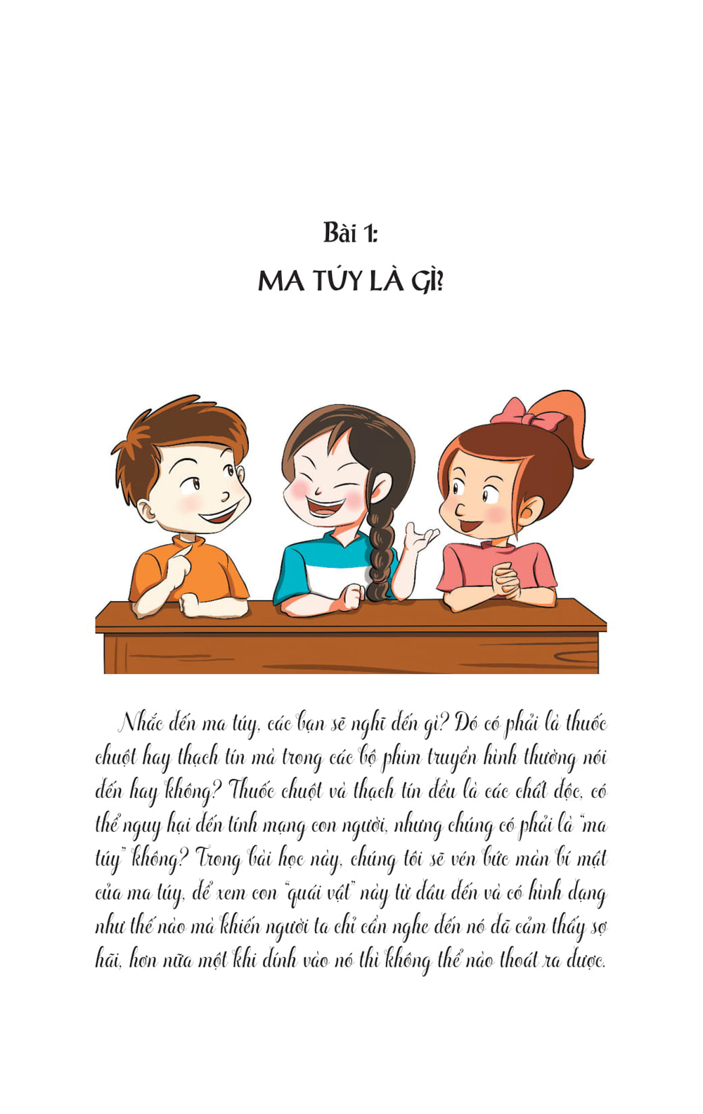Giáo dục phòng chống chất gây nghiện trong trường học, đó là mắc xích quan trọng mang tính chất quyết định trong công cuộc phòng chống chất gây nghiện. Việc giáo dục này đòi hỏi phải dựa vào đặc điểm tâm sinh lý, hành vi, khả năng nhận thức của học sinh ở những lứa tuổi khác nhau của thanh thiếu niên. Cẩm nang phòng chống chất gây nghiện học đường cho học sinh trung học phổ thông thông qua việc phổ cập kiến thức liên quan đến phòng chống chất gây nghiện như nhận thức đúng về chất gây nghiện, tác hại của chất gây nghiện, mối liên quan giữa lối sống và hành vi, các kiến thức pháp luật liên quan đến phòng chống chất gây nghiện cũng như các biện pháp hữu hiệu để ngăn ngừa chất gây nghiện, nâng cao kỹ năng phòng chống chất gây nghiện cho học sinh, giúp các em học sinh nâng cao nhận thức về nguy hại của chất gây nghiện, từ đó tránh xa chất gây nghiện, tham gia tích cực hoạt động phòng chống chất gây nghiện…