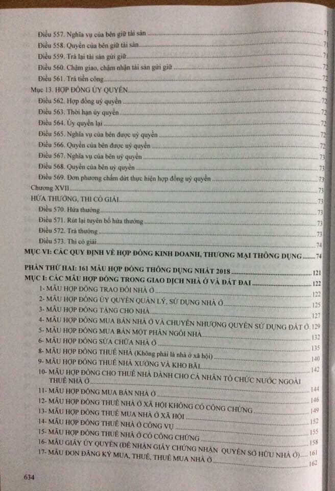 Cẩm Nang Soạn Thảo, Ký Kết Và Thực Hiện Hợp Đồng Dân Sự, Kinh Tế, Lao Động Với Các Mẫu Hợp Đồng Thông Dụng Nhất 2018 Tác giả: Luật gia Nguyễn Ngọc Điệp NXB: Hồng Đức Phát hành: 6/2018 Khổ 20*28 cm dày 640 trang Lời giới thiệu: Trong phần nhiều hoạt động của đời sống xã hội, mọi cá nhân, tổ chức để thoả mãn và đáp ứng các nhu cầu, lợi ích của mình cả về vật chất và tinh thần, thì phải xác lập các mối quan hệ bằng các giao dịch được thể hiện dưới hình thức hợp đồng. Nghĩa là họ đã xác lập các quyền và nghĩa vụ khi tham gia các giao dịch đó. Đặc biệt là các giao dịch về dân sự, kinh doanh và thương mại thì việc xác lập giao dịch bằng hình thức hợp đồng là hết sức cần quan trọng và cần thiết đối với cá nhân và tổ chức. Về mặt pháp luật Nhà nước cũng đã ban hành nhiều văn bản quy định, điều chỉnh các giao dịch của đời sống xã hội trong đó bao gồm các giao dịch về dân sự và kinh doanh - thương mại, lao động…. Các văn bản pháp luật do Nhà nước ban hành đã quy định khá rõ hình thức giao dịch bằng hợp đồng là hình thức giao dịch chủ yếu đồng thời cũng quy định cụ thể nhiều loại hợp đồng cơ bản thông dụng cũng như những giao dịch bắt buộc phải được thực hiện bằng hợp đồng và hợp đồng phải bằng văn bản… Quốc hội đã ban hành văn bản luật quan trọng như: Luật Dân sự và Luật Thương mại, Bộ luật Lao động để quy định các điều chỉnh, các giao ước trên. Tuy nhiên trong thực tiễn thì vấn đề lại nảy sinh là trong các giao dịch đó không ít người tham gia các giao dịch lại không nắm vững hoặc không hiểu biết đầy đủ về pháp luật nên đã không thực hiện đúng cả về nội dung và hình thức của hợp đồng mà pháp luật đòi hỏi. Việc hiểu và nắm vững hệ thống pháp luật hợp đồng cùng với việc nhận thức đầy đủ ý nghĩa của việc tuân thủ pháp luật về hợp đồng sẽ không chỉ tạo điều kiện thuận lợi trong khi tham gia các giao dịch, trong hoạt động kinh doanh…. mà còn xây dựng được lòng tin, uy tín giữa các bên tham gia. Trên tinh thần đó Nhà Xuất bản Hồng Đức cho xuất bản cuốn sách “CẨM NANG SOẠN THẢO, KÝ KẾT VÀ THỰC HIỆN HỢP ĐỒNG DÂN SỰ, KINH TẾ, LAO ĐỘNG VỚI CÁC MẪU HỢP ĐỒNG THÔNG DỤNG NHẤT 2018” do Luật gia Nguyễn Ngọc Điệp biên soạn theo những quy định mới nhất của Bộ Luật dân sự, Luật Thương mại, Bộ luật Lao động và nhiều văn bản pháp luật chuyên ngành quy định. Nội dung cuốn sách bao gồm những phần chính sau: PHẦN I: NHỮNG VẤN ĐỀ CƠ BẢN VỀ SOẠN THẢO, KÝ KẾT VÀ THỰC HIỆN HỢP ĐỒNG (Bao gồm vấn đề cần biết về thực hiện, sửa đổi và chấm dứt HĐDS, kinh tế, biện pháp bảo đảm trong giao dịch dân sự, KT, trình tự, thủ tục hồ sơ đăng ký và cung cấp thông tin về giao dịch bảo đảm – các quy định về HĐDS thông dụng”Trích BLDS 2015”- các quy định về HĐKD, TM thông dụng) PHẦN II. 161 MẪU HỢP ĐỒNG THÔNG DỤNG NHẤT NĂM 2018 (Bao gồm các mẫu HĐ trong giao dịch nhà ở và đất đai, dân sự, kinh doanh, thương mại, bán đấu giá, đấu thầu, vay, tín dụng, xây dựng, lao động…vv)