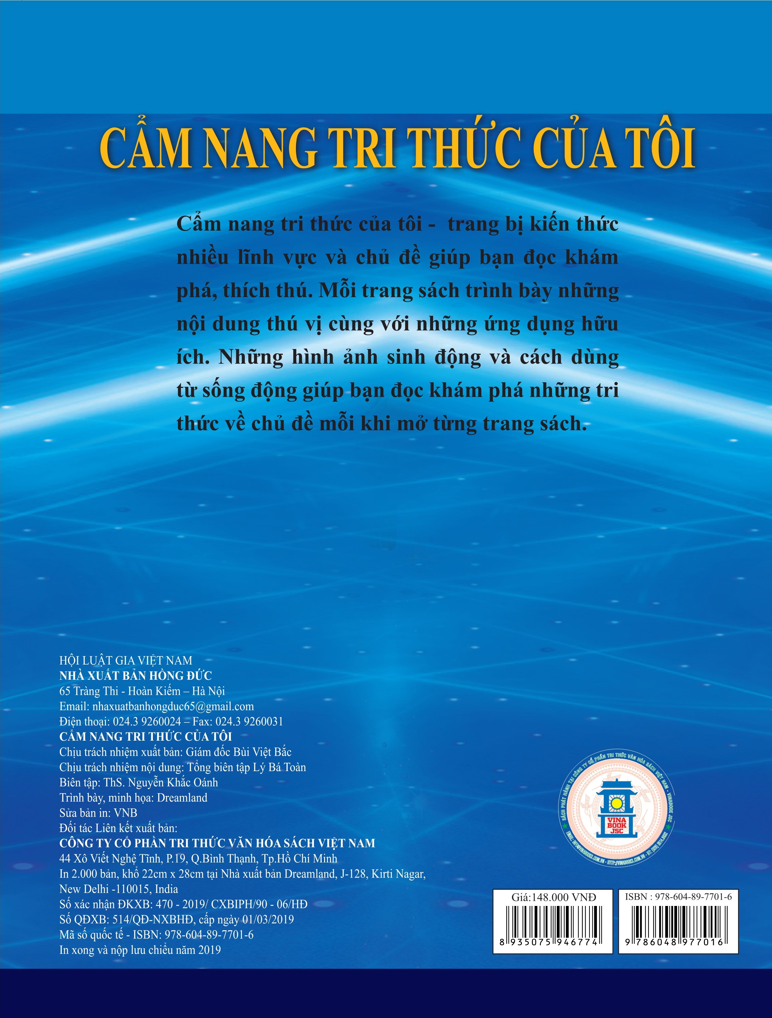 Mua tại TiktokCuốn sách Cẩm nang tri thức của tôi là một cuốn sách tham khảo lý tưởng dành cho độc giả mọi lứa tuổi. Với hình minh họa trực quan và nội dung dễ hiểu sẽ thúc đẩy sự tìm tòi và học hỏi. Được thiết kế trên nền hai trang với những mục “Thông tin thú vị” và “Bạn có biết” sẽ cung cấp cho bạn đọc thông tin chi tiết chưa từng có về nhiều chủ đề khác nhau. Cuốn sách là nguồn tư liệu quý giá dành cho học sinh, gia đình và thầy cô giáo.