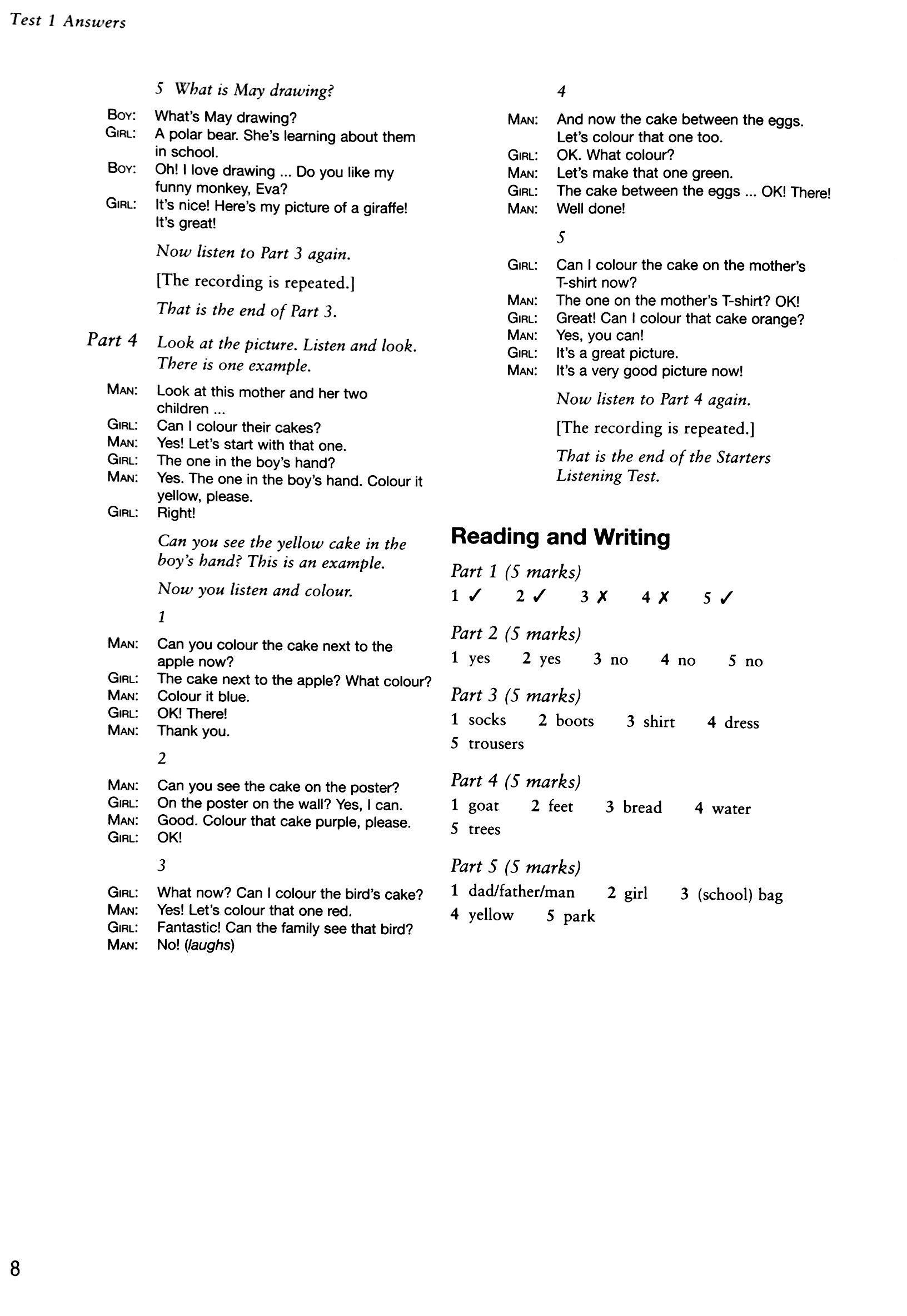 Starters 1 Authentic Examination Papers – Test 1 – Part 2 Reading and Writing (Including answer key)