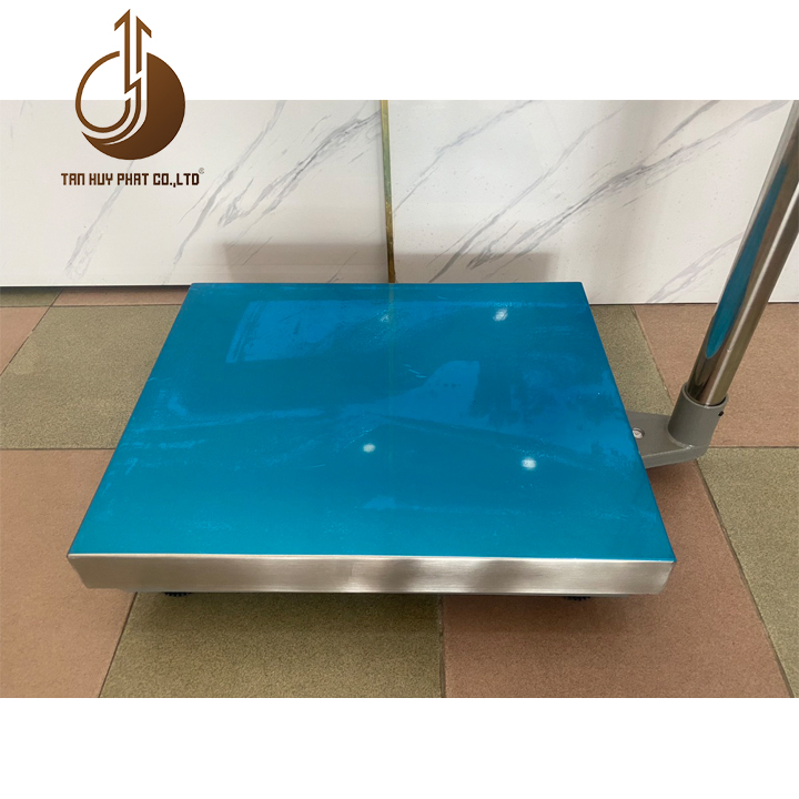 Chất liệu cân: Khung cân hợp kim thép vuông 4 sơn tĩnh điện dày 1.2 ly, mặt bàn cân inox dày 1.2 ly, đầu chỉ thị nhựa ABS.