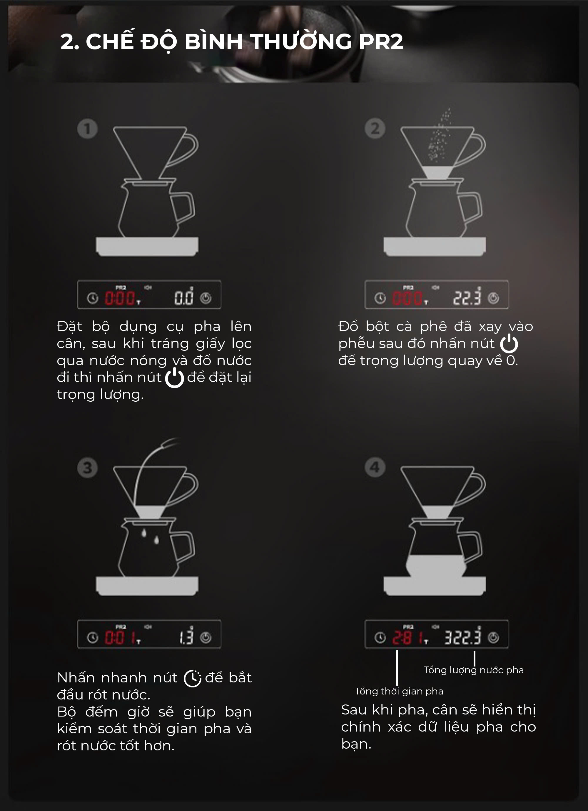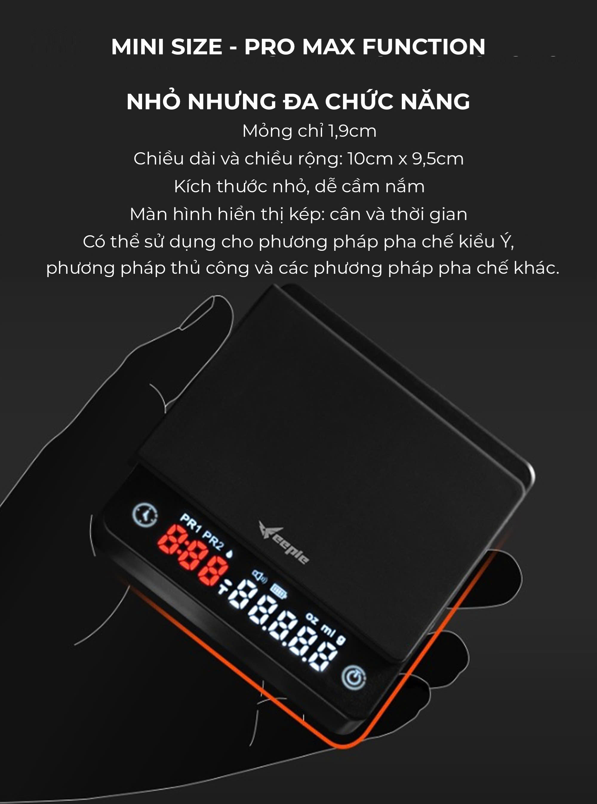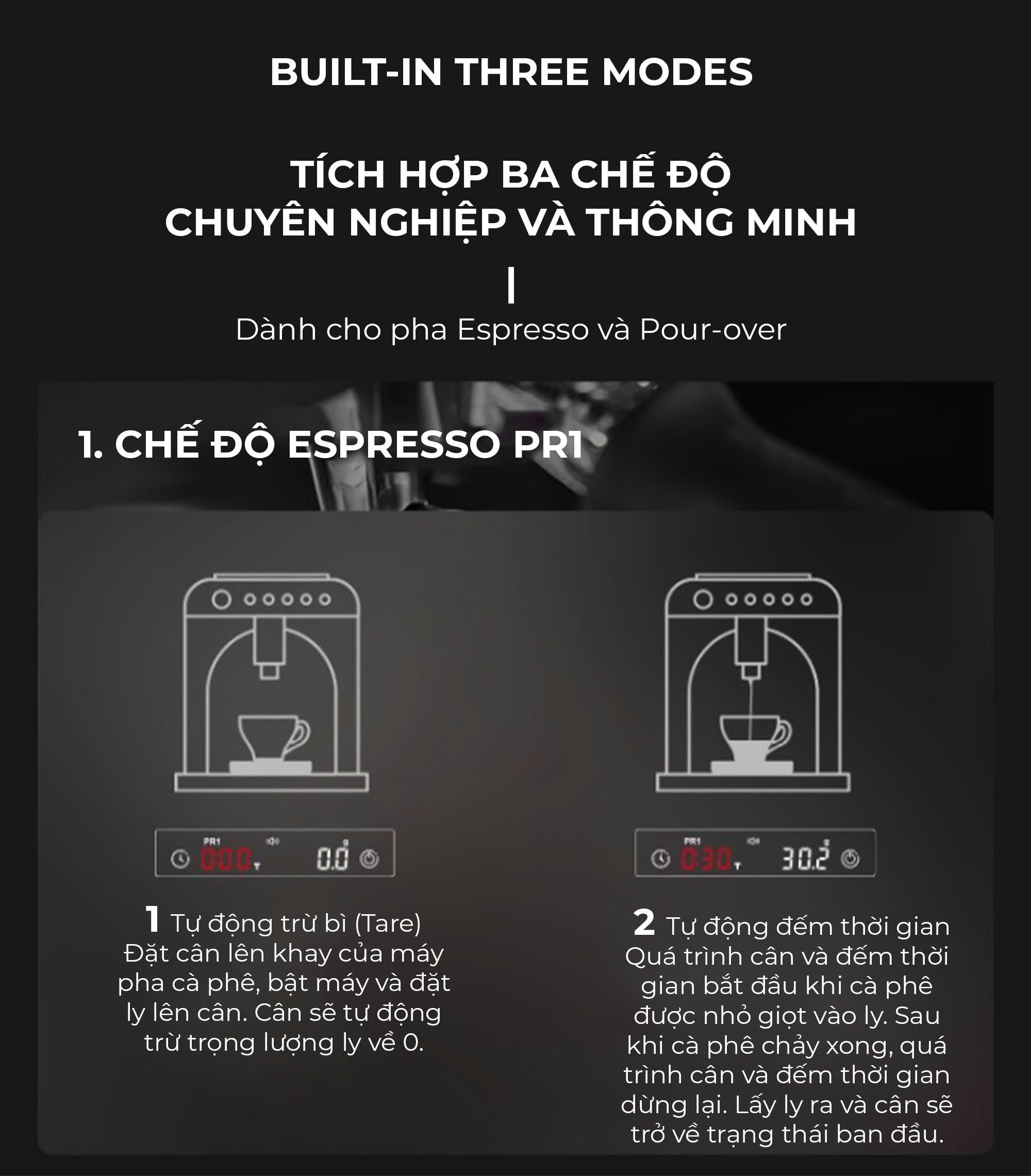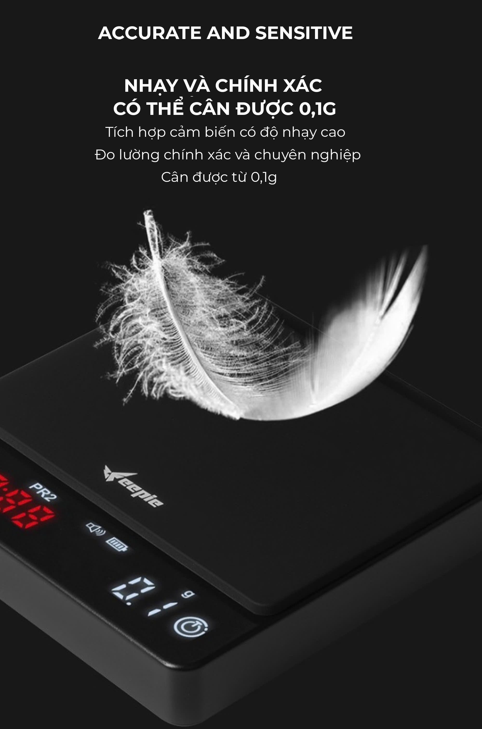 Đủ nhạy mức 0,1g cho mục đích cân đong và pha cà phê. Xài ngon lành với các máy pha espresso thủ công như Flair, ROK, Picopresso, Staresso…