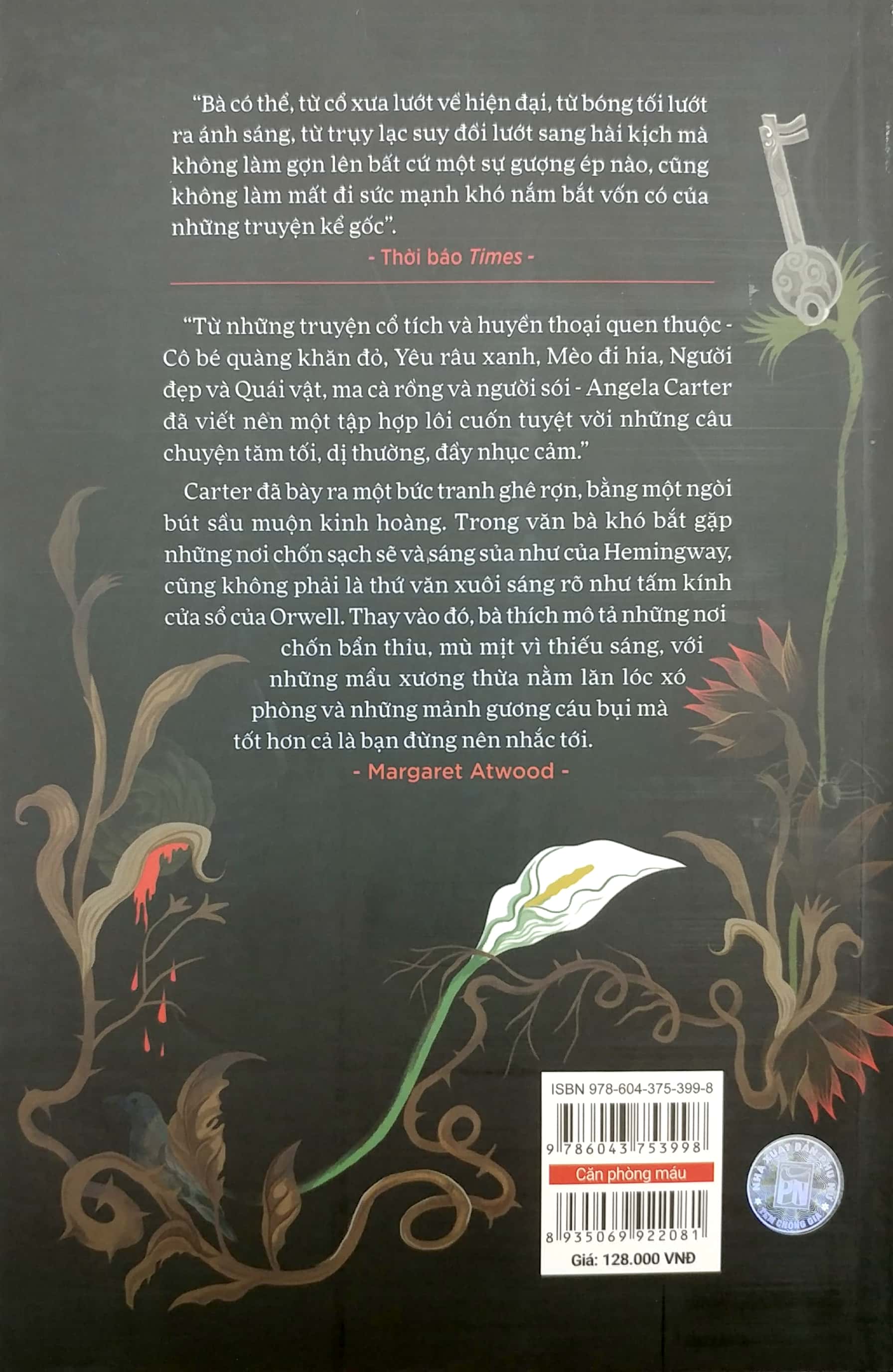 Căn phòng máu của Angela Carter là một tập truyện lấy cảm hứng từ những câu chuyện cổ tích và kinh điển phương Tây, gồm 10 truyện hết sức đa dạng từ 10 góc nhìn khác biệt đầy ấn tượng. Mặc dù mỗi câu chuyện đề cập đến một nhóm nhân vật khác nhau nhưng “phụ nữ bị áp bức tìm kiếm sự giải thoát” là chủ điểm chung được khám phá xuyên suốt tác phẩm, trở thành câu chuyện lớn đề cập đến nữ quyền và khả năng biến đổi.