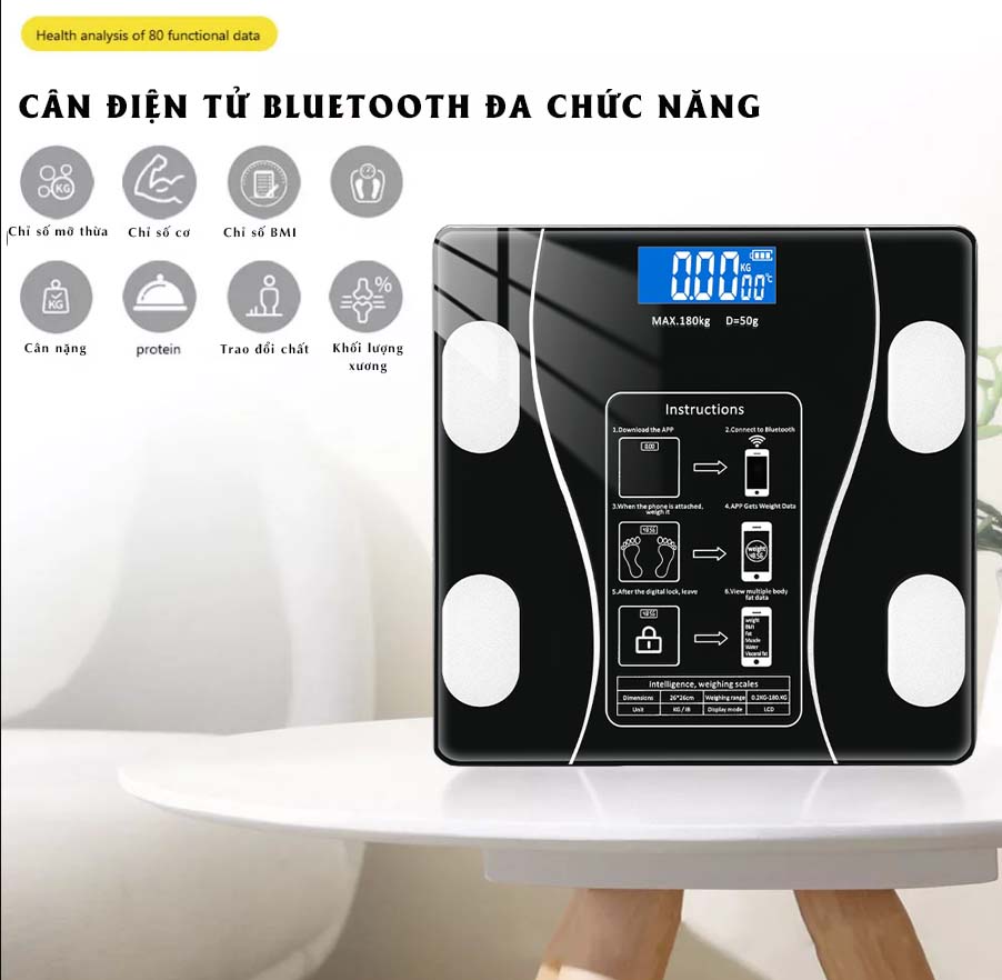 Cân điện tử mini nhập khẩu kết nối bluetooth đo lường chỉ số sức khoẻ