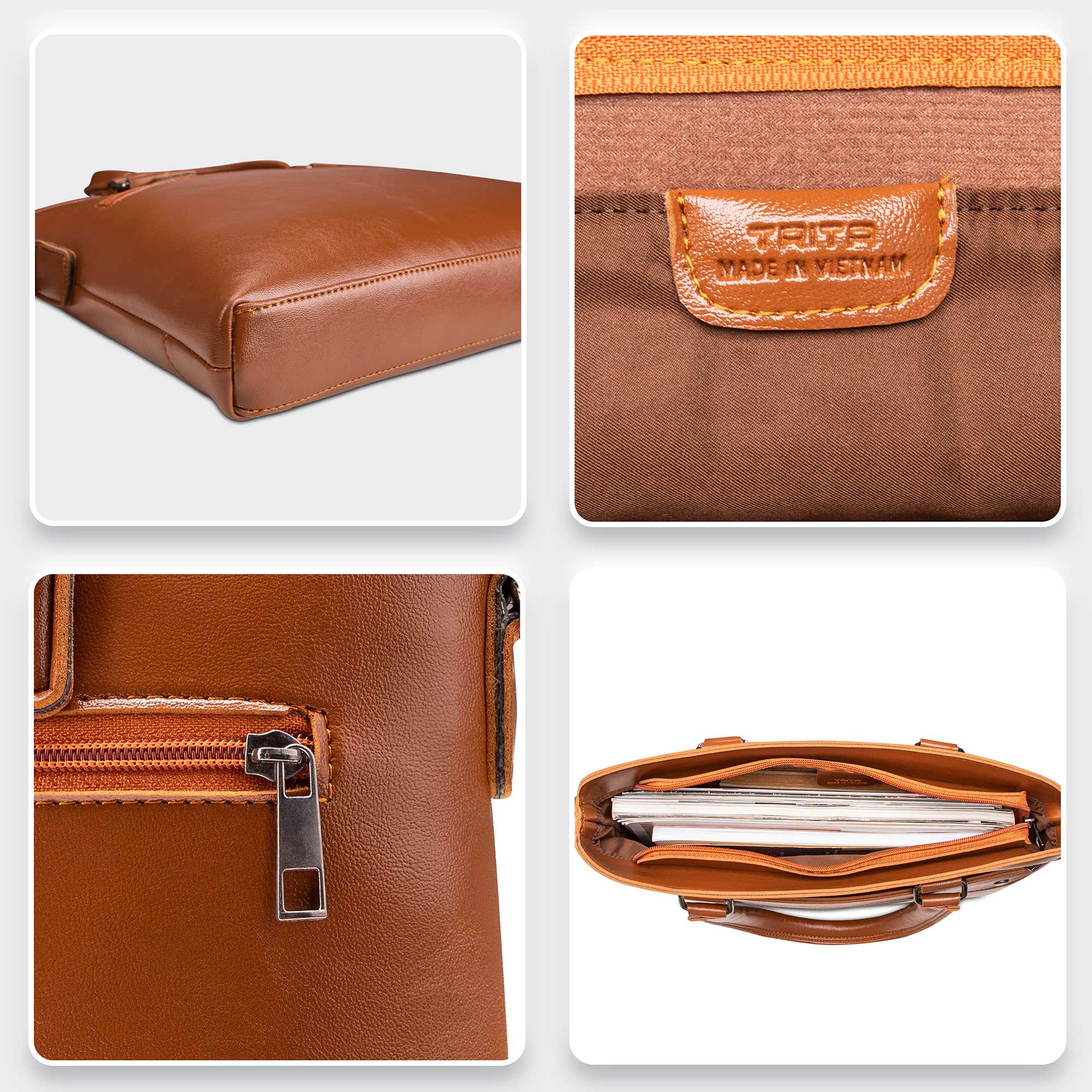 Cặp da công sở TCA25 có ngăn chính lớn, đựng vừa tài liệu khổ A4, máy tính xách tay 13 inch. Bên cạnh đó, cặp có nhiều ngăn phụ để bạn sắp xếp đồ đạc