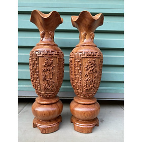 ✨Cặp lục bình trạm khắc tứ quý bốn mùa, phong thủy hút tài lộc bằng gỗ hương đá kt cao 30×10cm