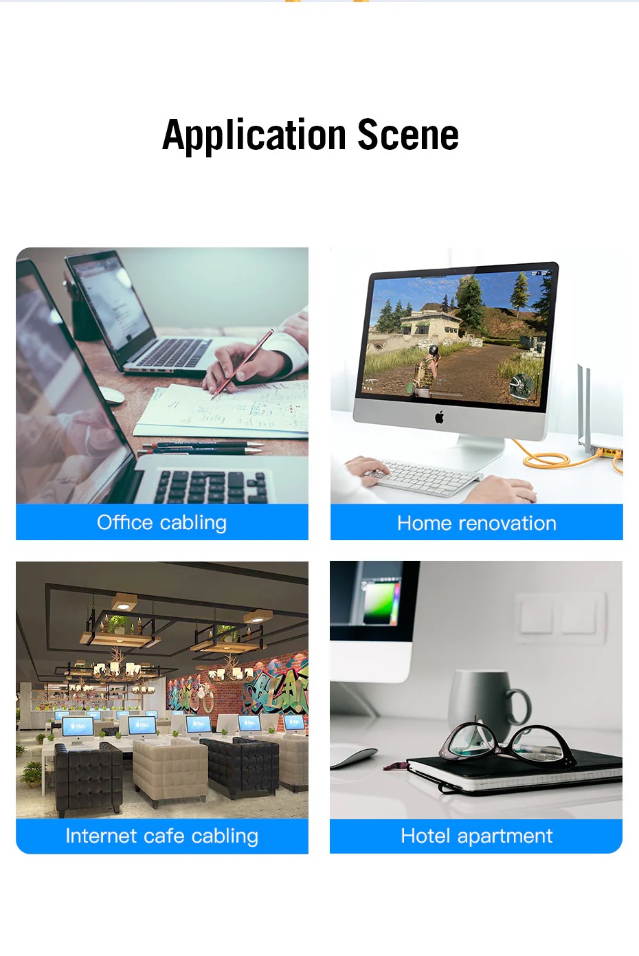 1. Data transfer rate: 10G 2. Frequency: 600MHz 3. 4 shielded twisted pair (U/FTP) of copper wires 4. Pure Copper Core