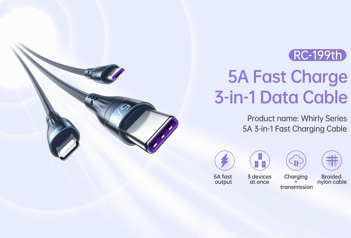 Cáp Sạc Nhanh Đa Năng 3 in 1 Remax RC 199th 3 Đầu Sạc Lightning Type C MicroUSB Dòng Sạc Tối Đa 5A