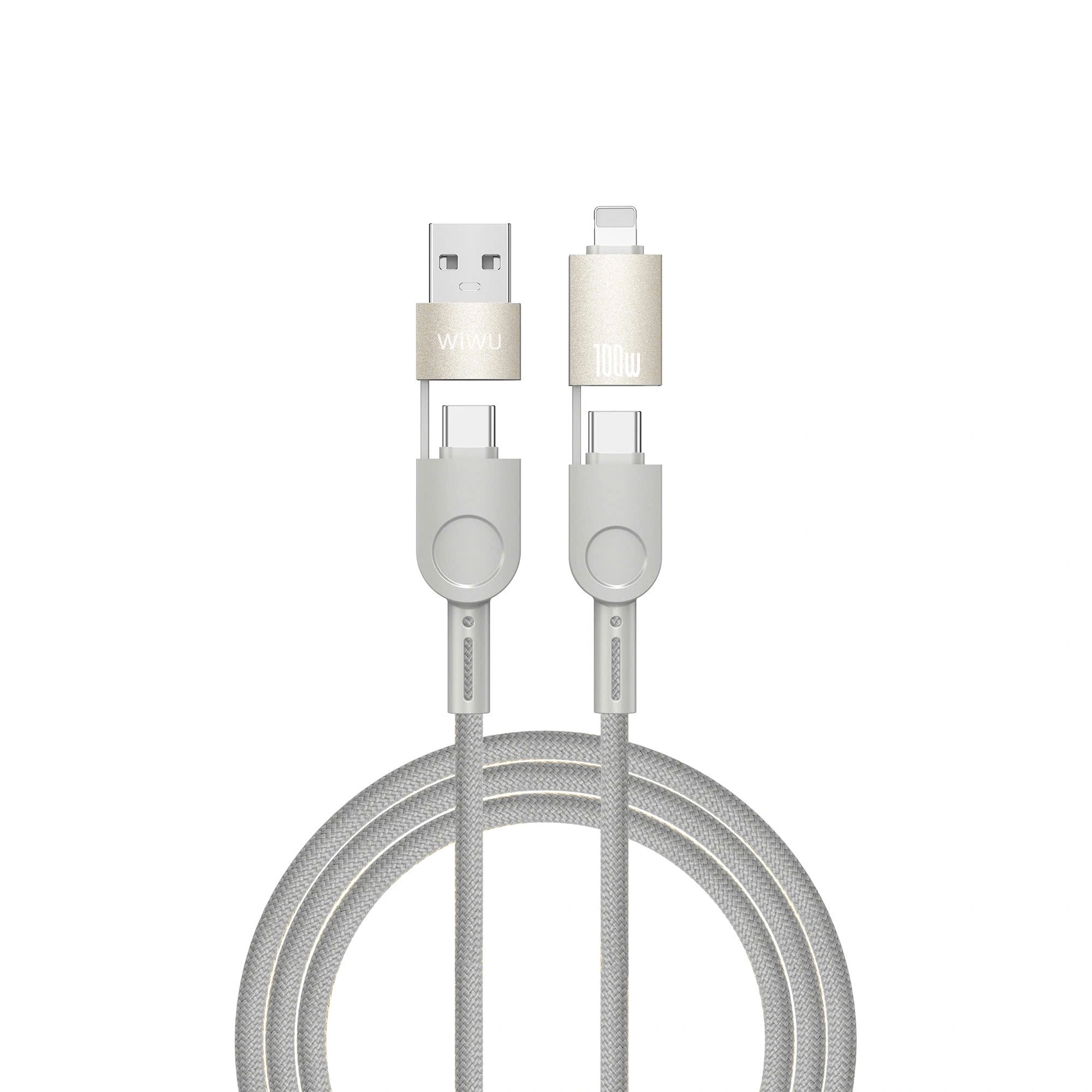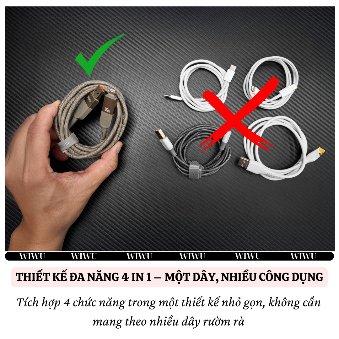 Cáp Sạc Đa Năng WiWU Raptor 4in1 100W – USB-A + USB-C to USB-C + L(iP) – Siêu Tiện Lợi, Sạc Cực Nhanh