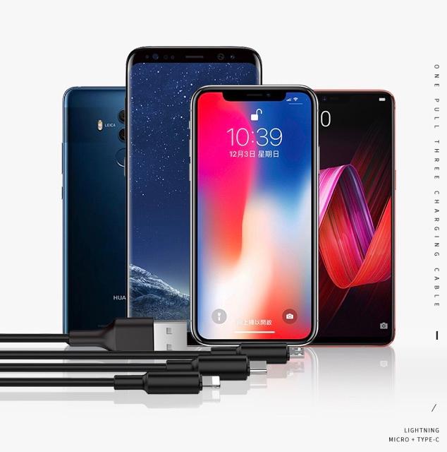 Dây sạc 3 đầu 3 trong 1 HD-P01 chiều dài 27cm, Kéo dài thu gọn | Lỗ Vũ