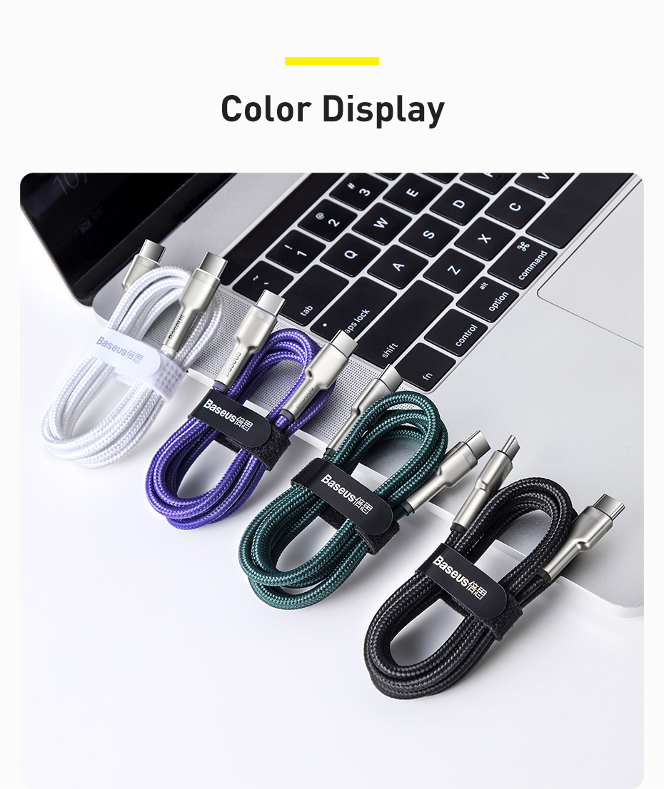 Giới thiệu sản phẩm Cáp sạc siêu nhanh Type C to Type C 100W Baseus Cafule Metal Series (Fast charge & Data Cable)- CATJK Tính năng sản phẩm Cáp sạc siêu nhanh Type C to Type C 100W
