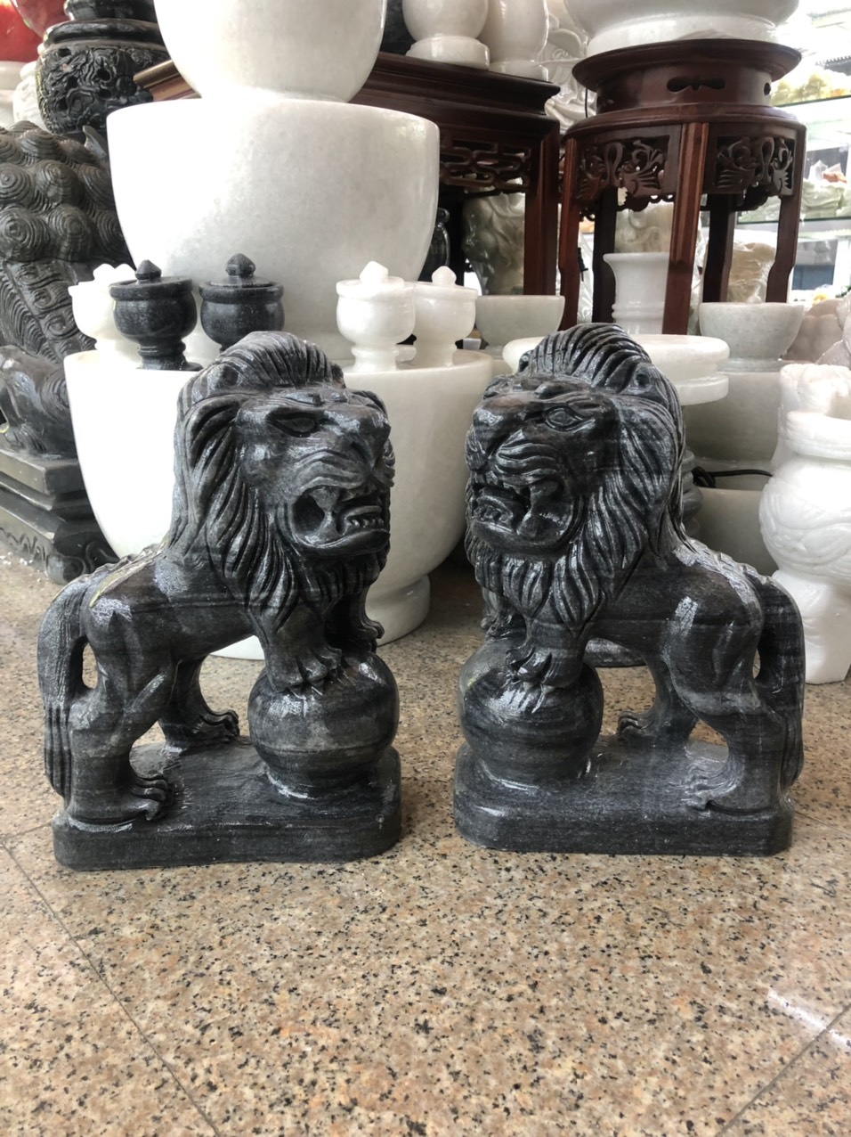 ✨Cặp Sư Tử phong thủy đá cẩm thạch vân đen - Cao 30 cm