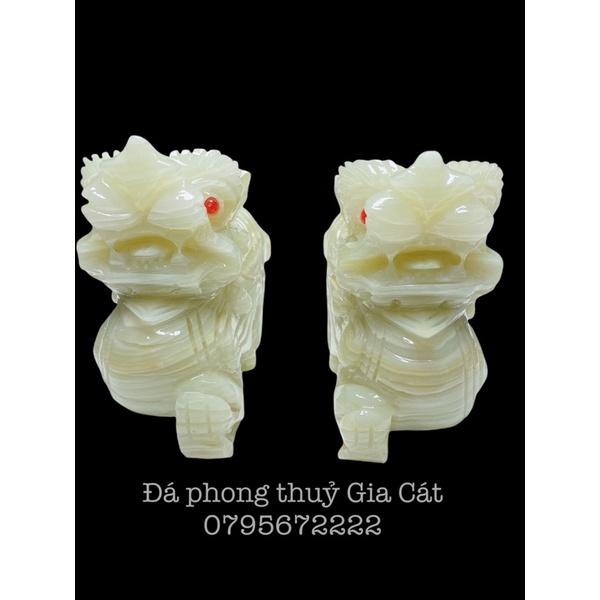 Cặp Tỳ Hưu Phong Thủy Đá Ngọc Onyx Pakistan Tự Nhiên Màu Trắng Ngọc 20cm