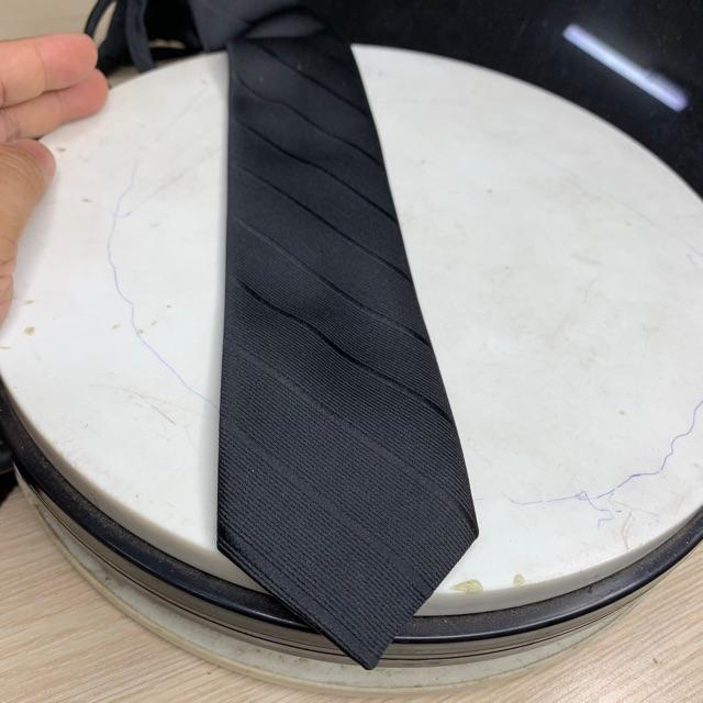 Cà vạt nam 8cm đen kẻ tăm chìm Cavat trung niên GiangPKC Chất liệu vải kẻ tăm - hàng đây 3 lớp . Dây kéo thắt sẵn tiện lợi