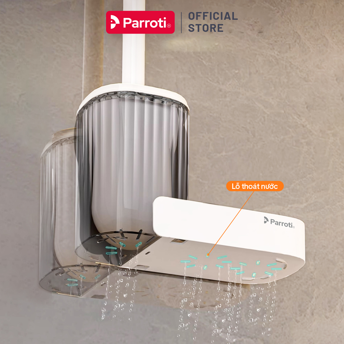 ✨Cây Cọ Bồn Cầu Thông Minh 2 Trong 1, Dán Tường, Có Khay Đựng Nước Tẩy Rửa, Đầu Cọ Cước Mềm Parroti Slim - SL05