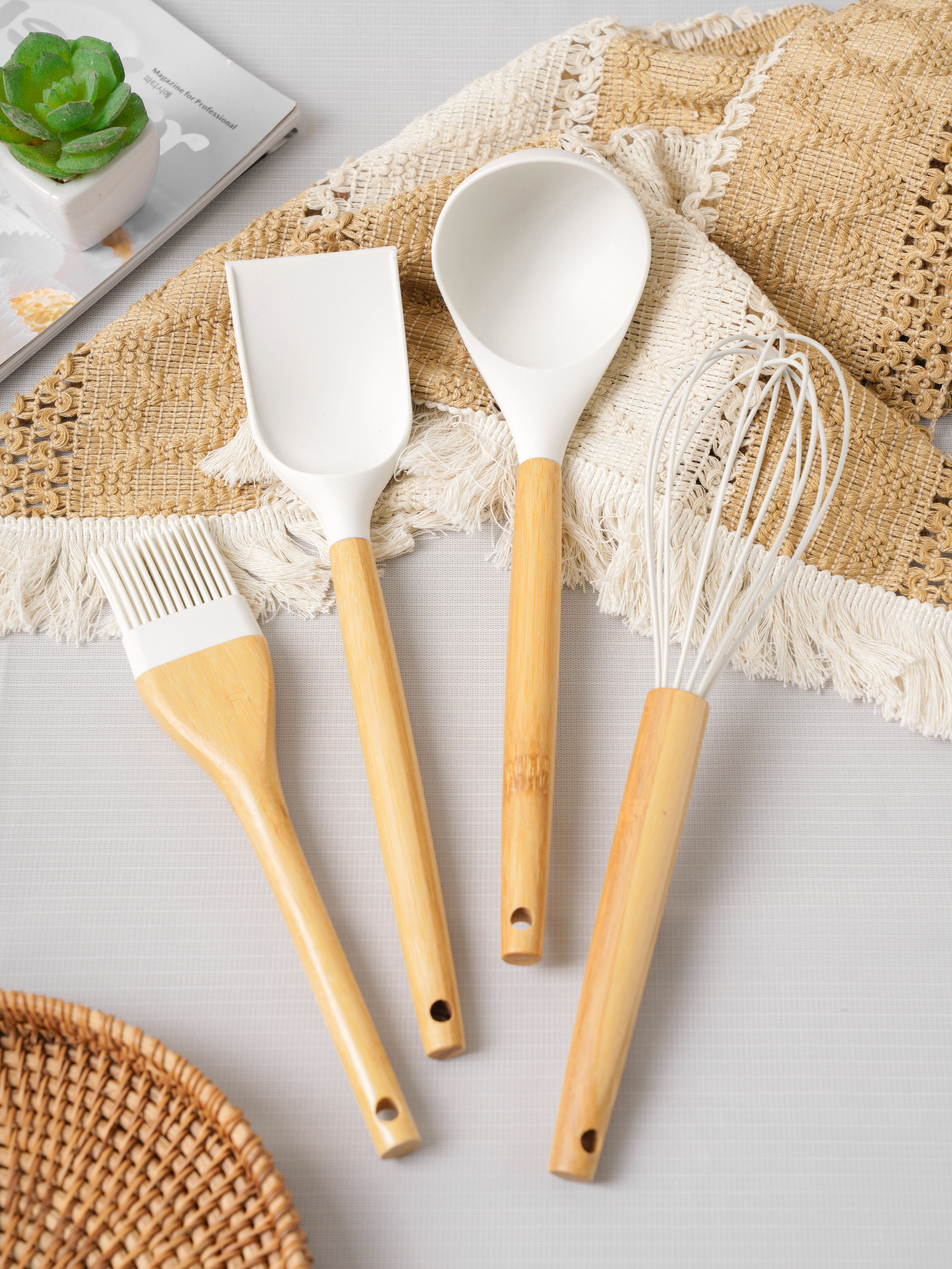 Cây đánh trứng silicone kích thước:315x60x60 màu sắc : trắng chất liệu : Bamboo / Silicone / Nylone