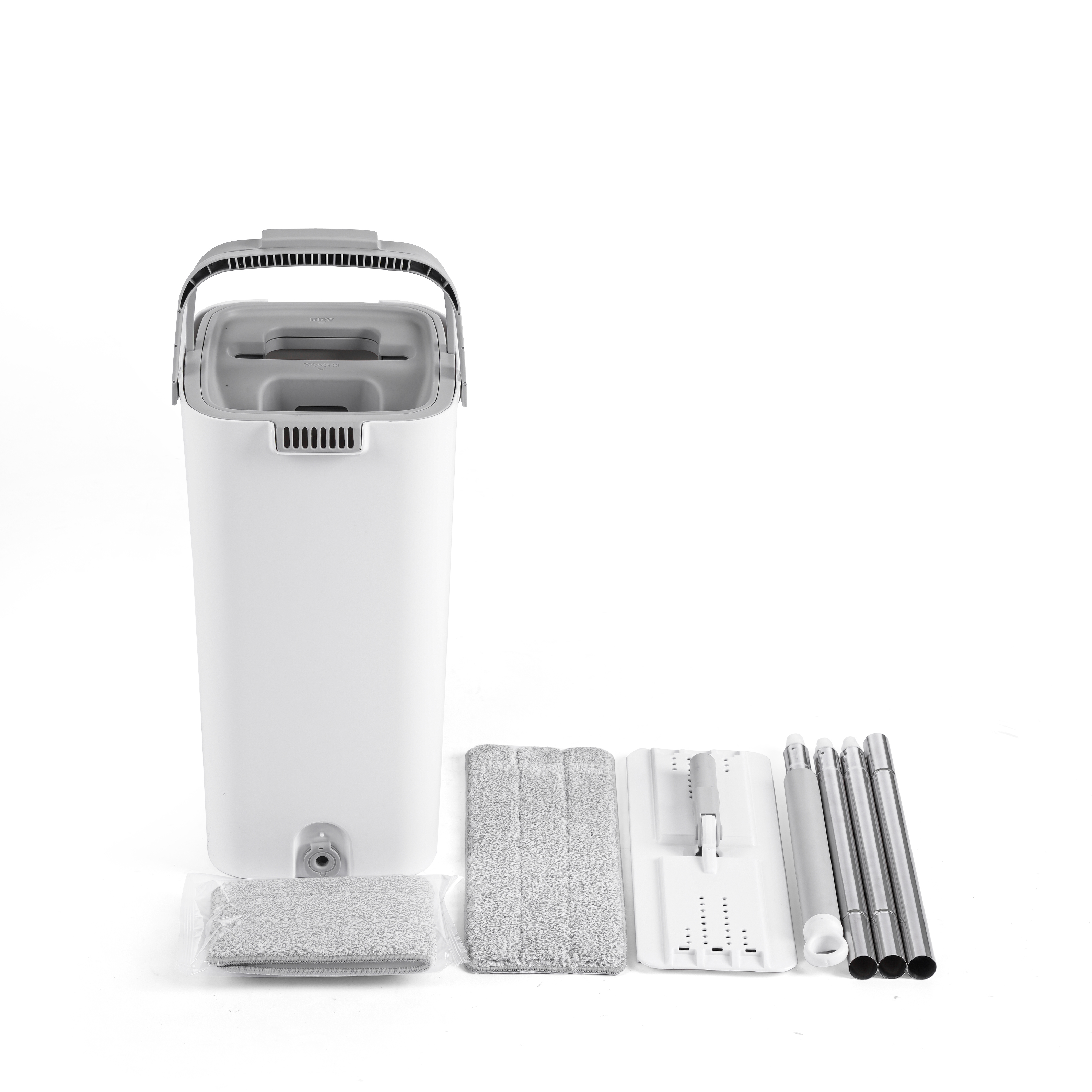 - Thương hiệu: MyJae - Màu sắc: Trắng, Xám - Chất liệu: Thép không gỉ, nhựa, polyester - Kích htước: Chiều dài cây lau: 123cm, Bông lau: 33,5 x 12,5cm, Thùng lau: 41 x 26 x 22