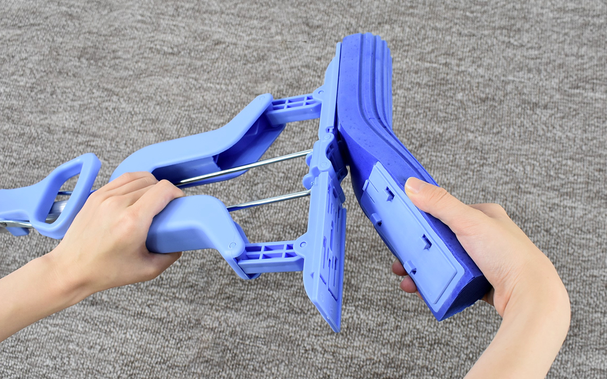 Thiết kế độc đáo, thông minh với đầu mút lau bằng bọt biển Polypropylene với khả năng thâm hút nước cực nhanh đồng thời làm sạch bông lau ngay khi sử dụng.