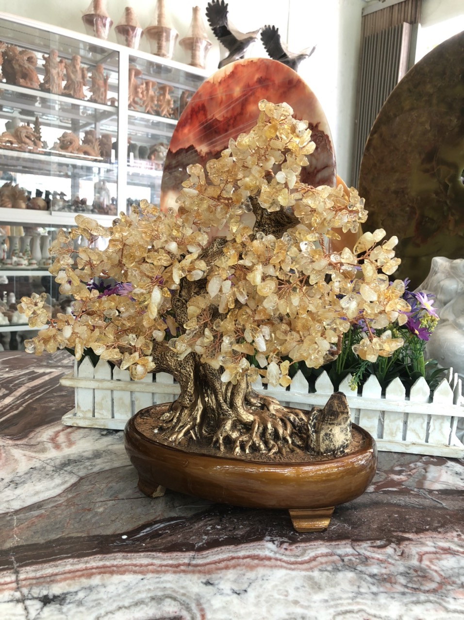✨Cây Tài Lộc bonsai phong thủy đá thạch anh vàng - Cao 40 cm