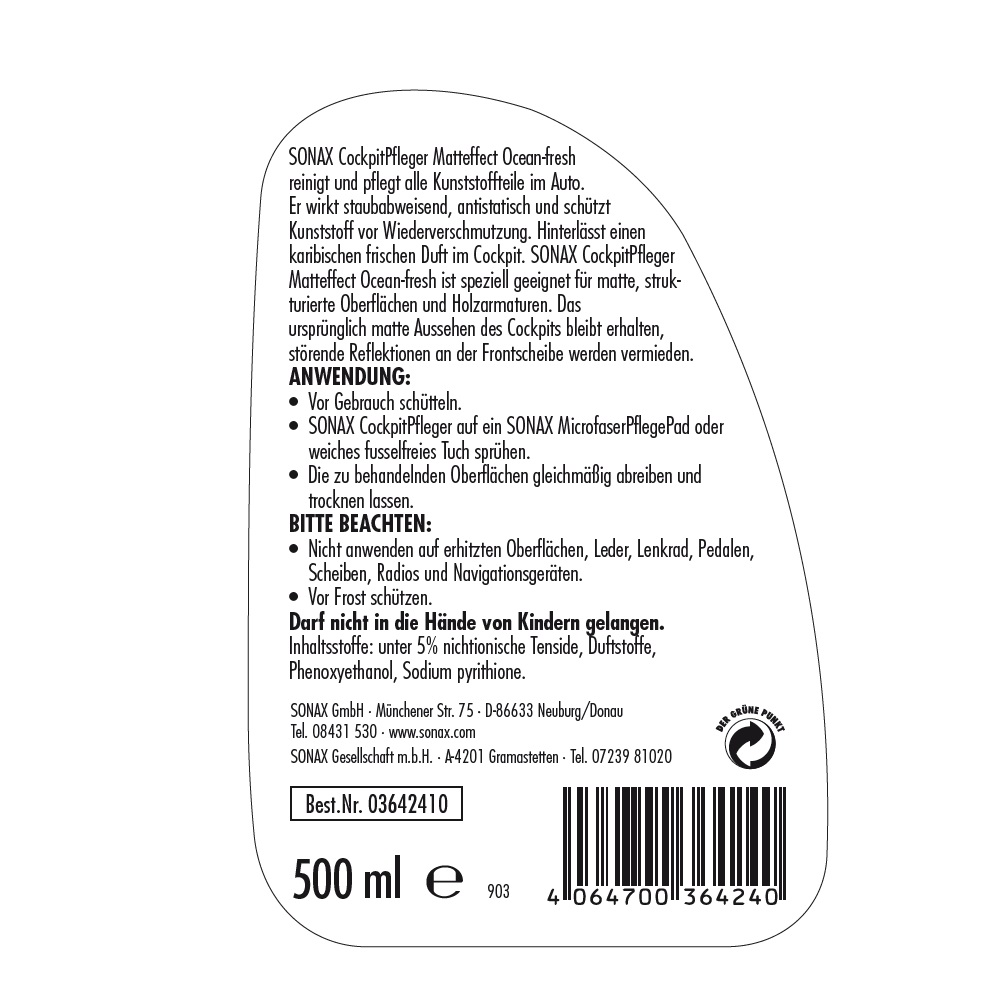 ✨Chai Xịt Bảo Dưỡng Táp Lô Hương Đại Dương Sonax Cockpit Spray Matt Effect Ocean-fresh 364241
