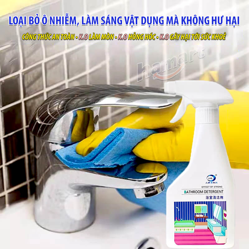 ✨Chai Xịt Tẩy Cặn Canxi Inox Gương Kính Nhà Tắm LKB 350ml Tẩy Cặn Ố Mờ Vòi Sen Lavabo Hồ Cá Tường Gạch Đa Năng