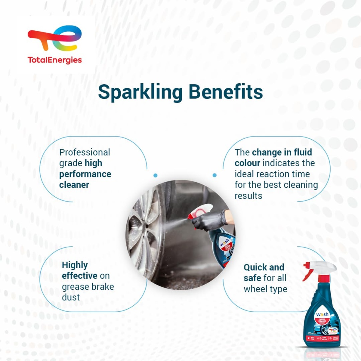 Giới thiệu Chai xịt vệ sinh vành xe, mâm xe, hợp kim và vành thép má phanh Total Energies TE-WC500 500ml Chai xịt vệ sinh vành xe, mâm xe, hợp kim và vành thép má phanh