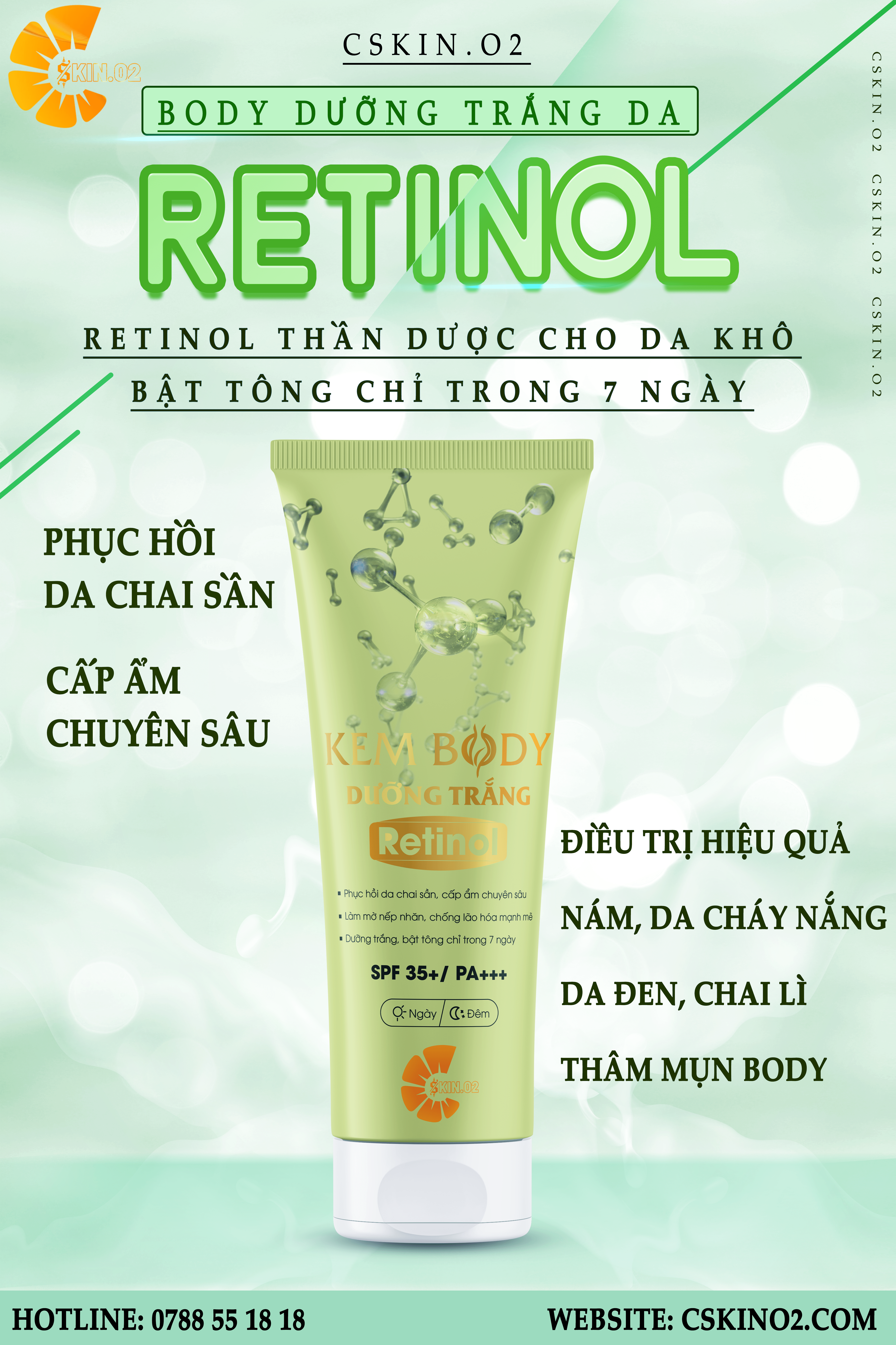 #Kem body lotion retinol CSKIN.02 #Dưỡng trắng # Cấp ẩm Phương pháp mới thay thế tắm trắng an toàn & hiệu quả tối ưu, bật 10 tông chỉ sau 7 ngày sử dụng. Cấp ẩm