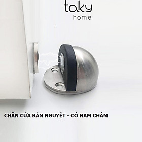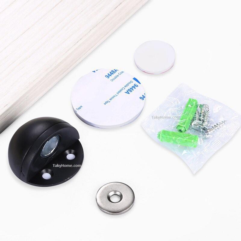 - Chặn cửa bán nguyệt Nam châm của Taky Home được lắp đặt ở dưới sàn nhà, ngăn không cho cửa va chạm mạnh vào tường, đảm bảo sự bền bỉ của tay nắm và cửa với tường.